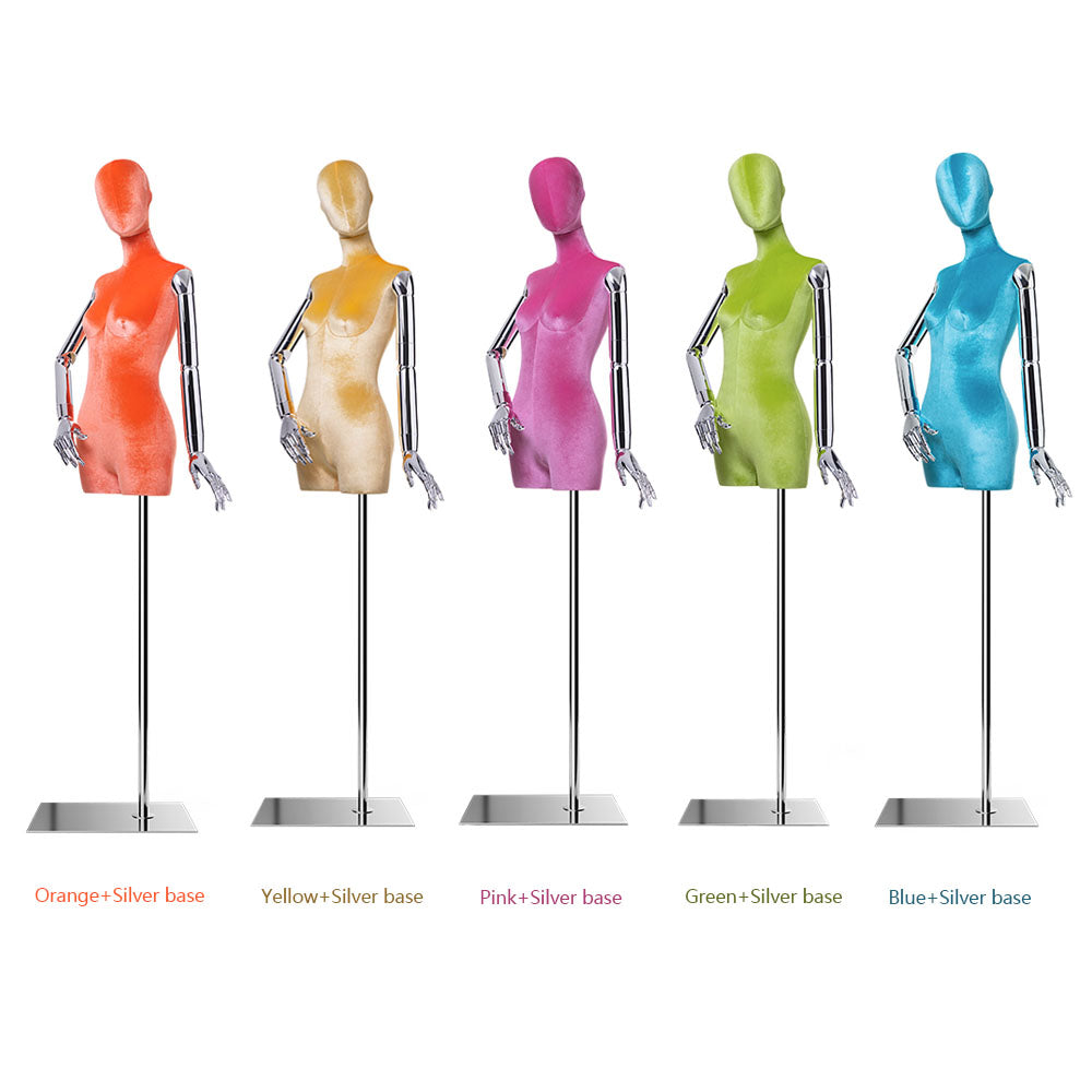 JELIMATE | Half Body Mannequin Female - Velvet Fabric Torso Mannequin with Stand & Gold/Silver Hands
