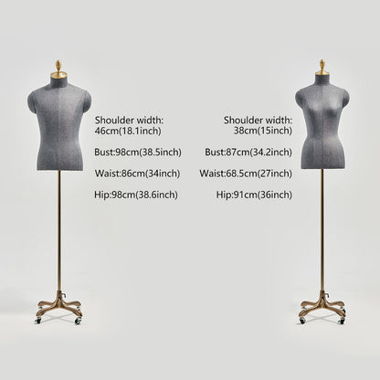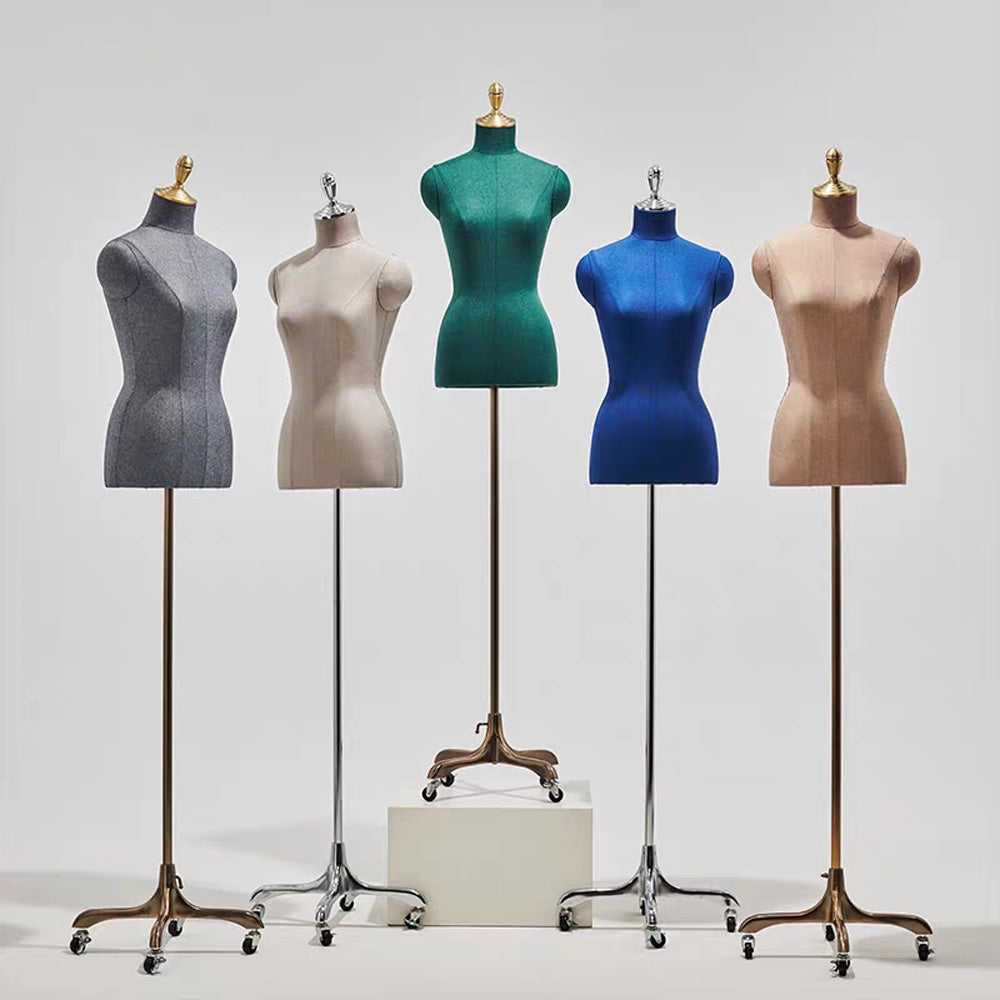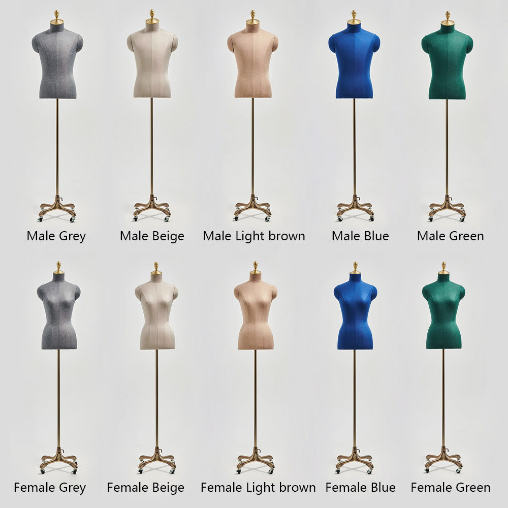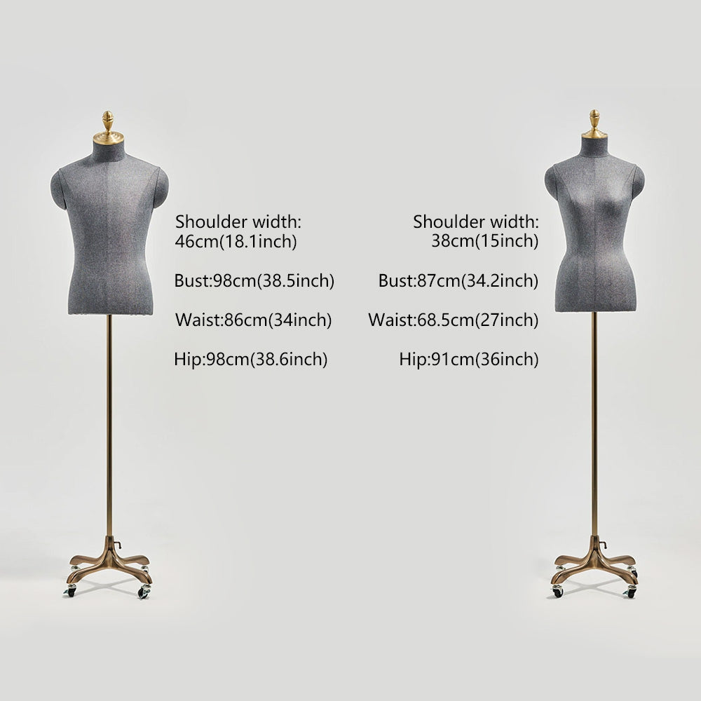 💟1).Introduce elegance and functionality to your boutique with this JELIMATE premium half body mannequin, available in male and female versions and wrapped in a high-quality linen fabric. Each mannequin is crafted to highlight clothing and accessories beautifully, allowing customers to envision the full appeal of each item. With a luxurious gold wheel base, it offers effortless mobility for easy repositioning in store displays or window presentations. Perfect for showcasing apparel, scarves, jewelry, and more, this versatile mannequin adds a sophisticated touch to any boutique display, capturing attention and elevating your store's aesthetic.