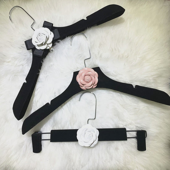 Elevate your clothing presentation with our black velvet hangers, the perfect solution for both clothing store,hotel and home use. Made from durable plastic, these hangers come in two clothes hanger styles and one pants hanger style, each featuring a luxurious velvet coating that ensures garments stay securely in place,preventing slipping and creases. The fine craftsmanship of these hangers adds a refined look to any closet, clothes store or hotel room. Designed for functionality and style, these hangers are a must-have for displaying clothing and pants beautifully, with minimal effort.