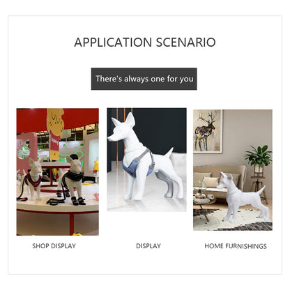 The product is dog mannequin, the design are very simple and modern, use it to dress up your store can grab customer's attention,use it to dress up your home can make your home become more cozy and gorgeous,use it to dress up pet party can create a warm party atmosphere, will make a superb addition to your life decoration!