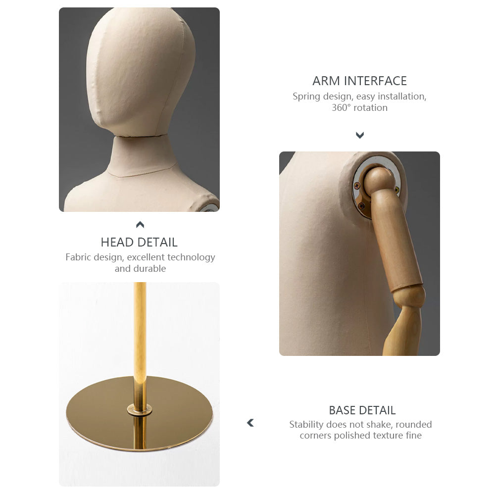 🔥5).Sturdy stand ,the golden round base with adjustable height pole ,extension pole easy to display different height ,the gold round base also is durable enough to serve longer time and strongly support the whole mannequin.