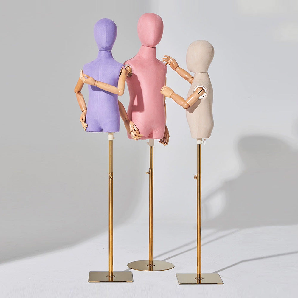 The product is 2023 New Fashion Quality Display Kid Mannequin Torso,Lovely Children Dress Form With Wooden Arms,have multi colors options for u chioce,also have three different size style for u chioce,the design are very beautiful and fashion, use it to dress up your store can grab customer's attention,use it to dress up your window can make your window become more outstanding and gorgeous,use it to dress up your home can make your home become more fresh and warm,use it to dress up your works can present perfect display effect,also can use it to display your products in a window, on a counter, on a tiered display shelf, or on the floor Ideal for sweaters, T-shirts, dresses, blouses, tops and accessories.