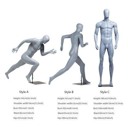 💖Style A (Male Running Body) Size : Height : 143 cm(56.3 inch),Shoulder Width : 54 cm(21.2 inch),Bust : 105 cm(41.3 inch) ,Waist : 86 cm(33.8 inch),Hip : 107 cm(42.1 inch);