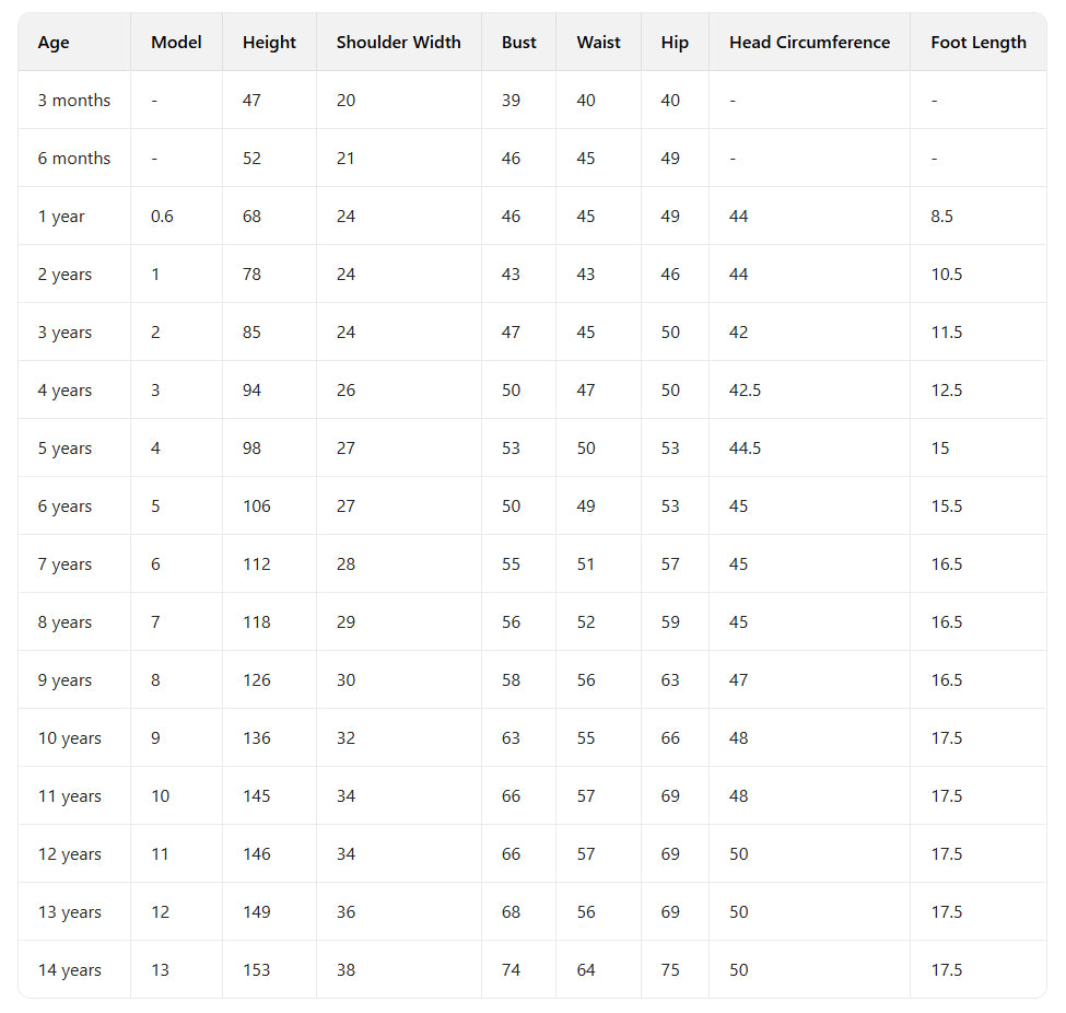 - Wide Size Range: Fits 3 months–14 years (choose by height, not age)—from baby mannequin for newborns to teen-sized models.