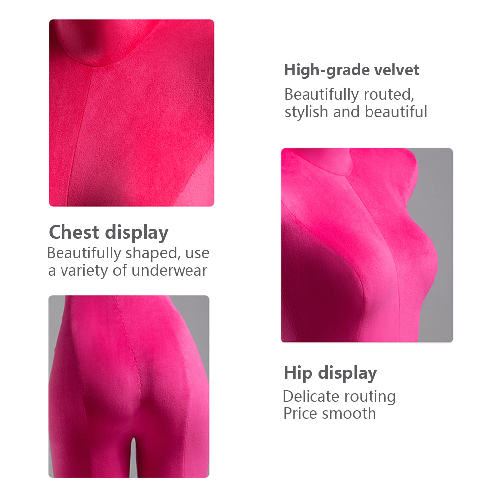 Jelimate Lingerie Store Female Underwear Mannequin Torso,Pink Red Velvet Mannequin Bust Hip Body Form,Women Bikini Bra Trouser Lingerie Pant Dress Form Model