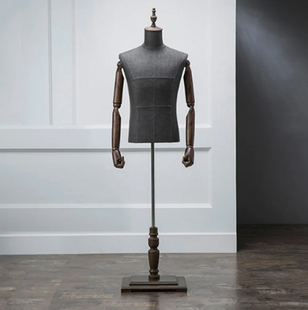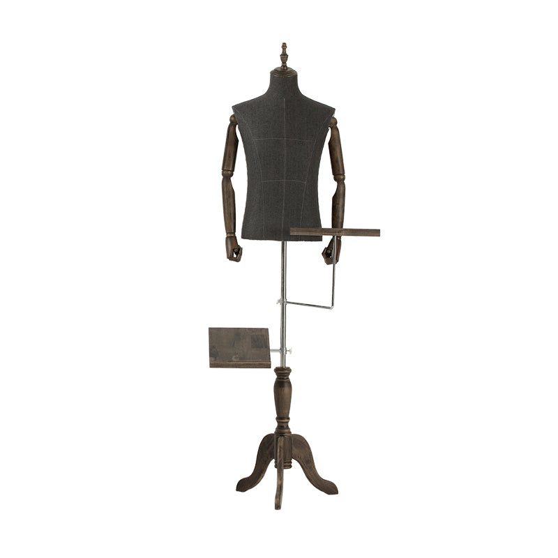 Gray Male Half Body Dress Form Mannequin Torso with Wooden Hands Men Fabric Mannequin Stand Pant Shoe Bag Clothes Display Rack