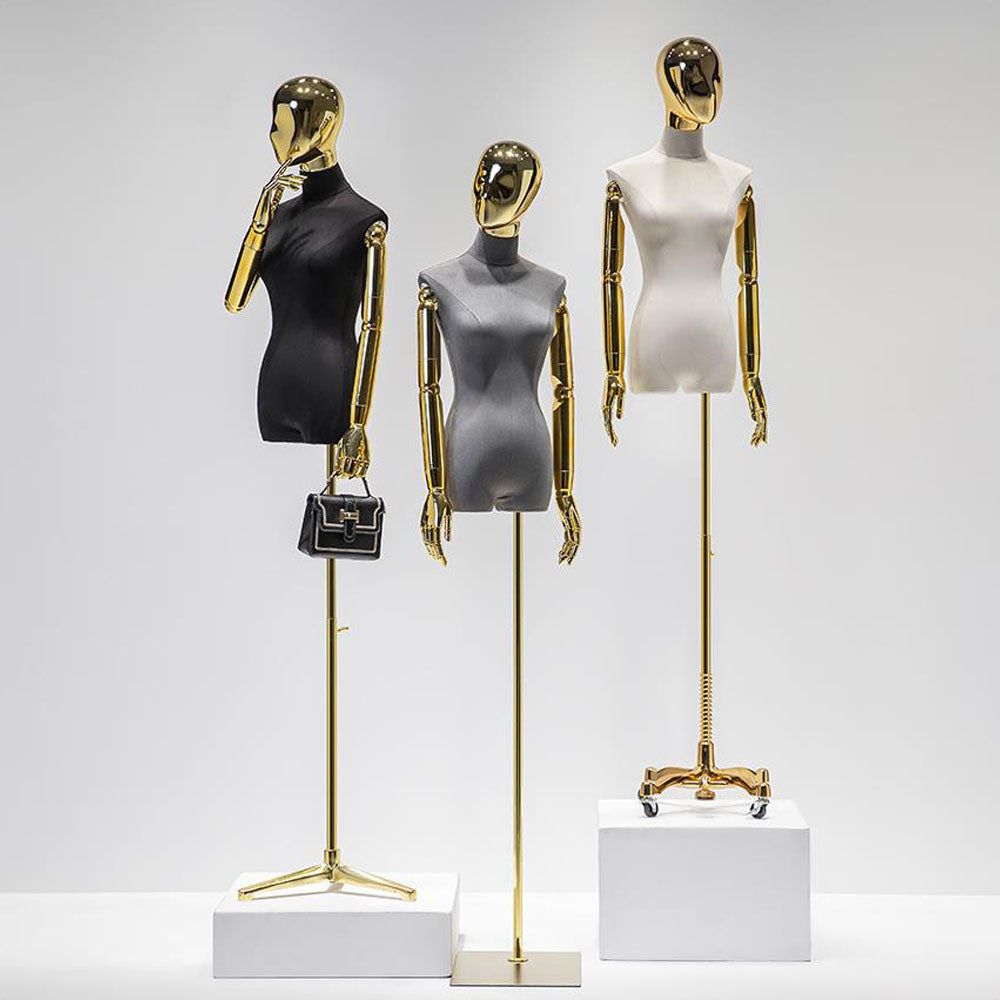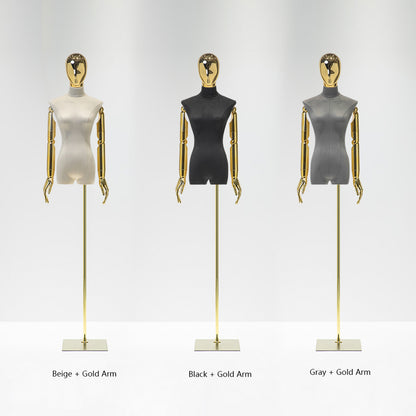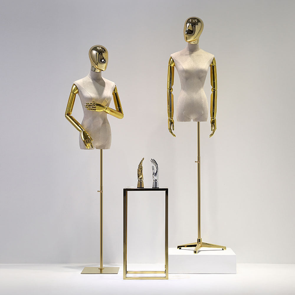 Jelimate Clothing Display Mannequin Female Body with Silver Gold Hand Head Manikin Adjustable Colorful Velvet Mannequin Torso Display Dress Form For Sewing
