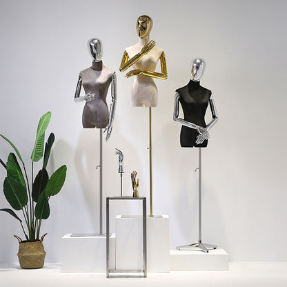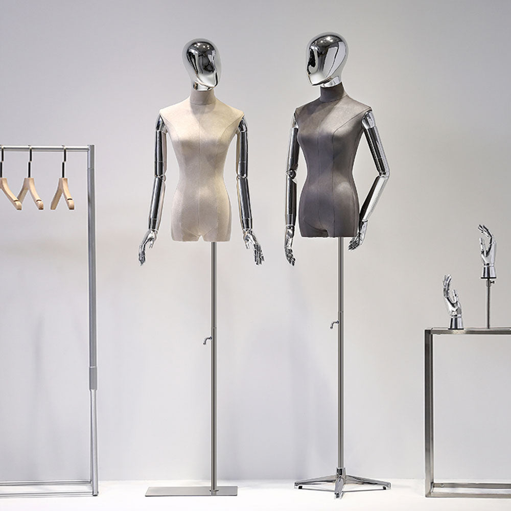 🔥8). Fabric Mannequin For Sale Big Breast Female Mannequins High Quality Luxury Display Fabric Wrapped Bust Dress Form Mannequin With Chrome Golden Silver Adjustable Arms Fabric Dress Form Sewing Adjustable Tailor Dummy Female Mannequin Torso With Head Women Upper-body Window Display Model Mannequin Fabric Covered Adjustable Dressmaker Mannequin Female Fabric Covered Women Manikin Model Female Mannequin Half Body Torso Mannequins Window Shop Props Half Body Female Mannequin Hanger Suit Formal Dress Display Rack Model Women's Fabric Mannequin With Plating Arms Fashion Mannequin