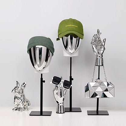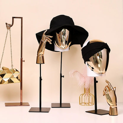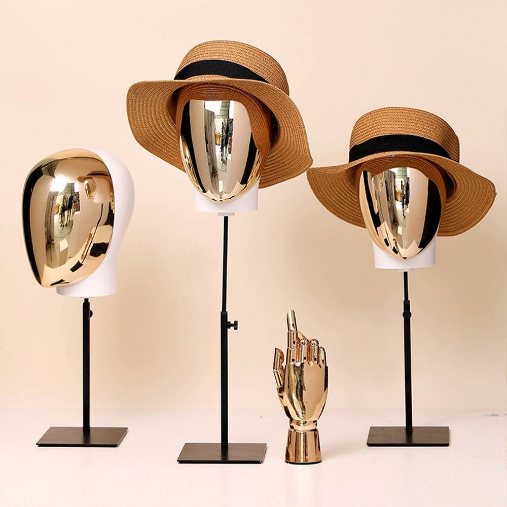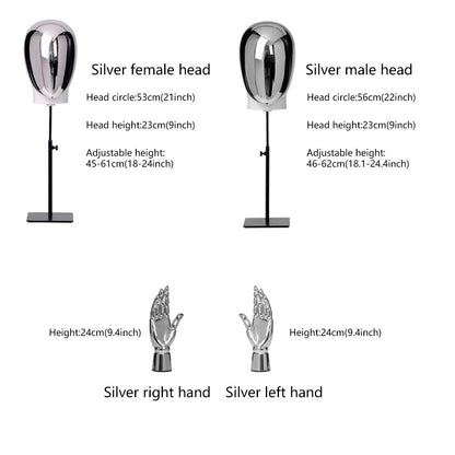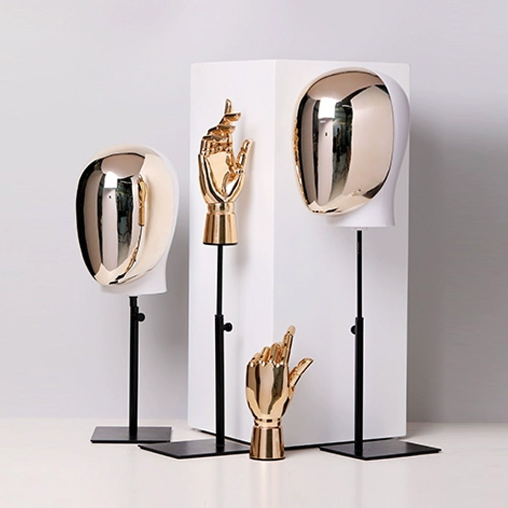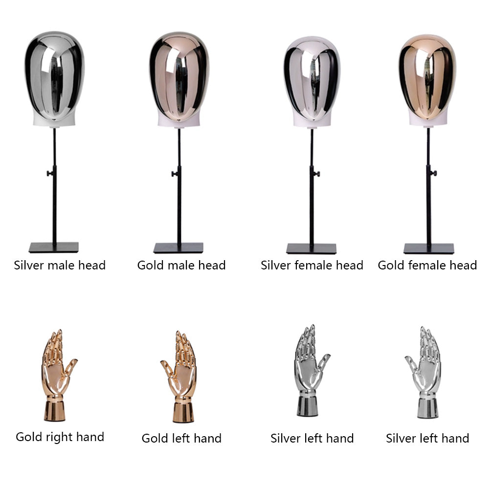 Jelimate High End Silver Gold Mannequin Head Stand,Window Display Golden Chrome Mannequin Hand,Hat Holder Wig Head Dress Form