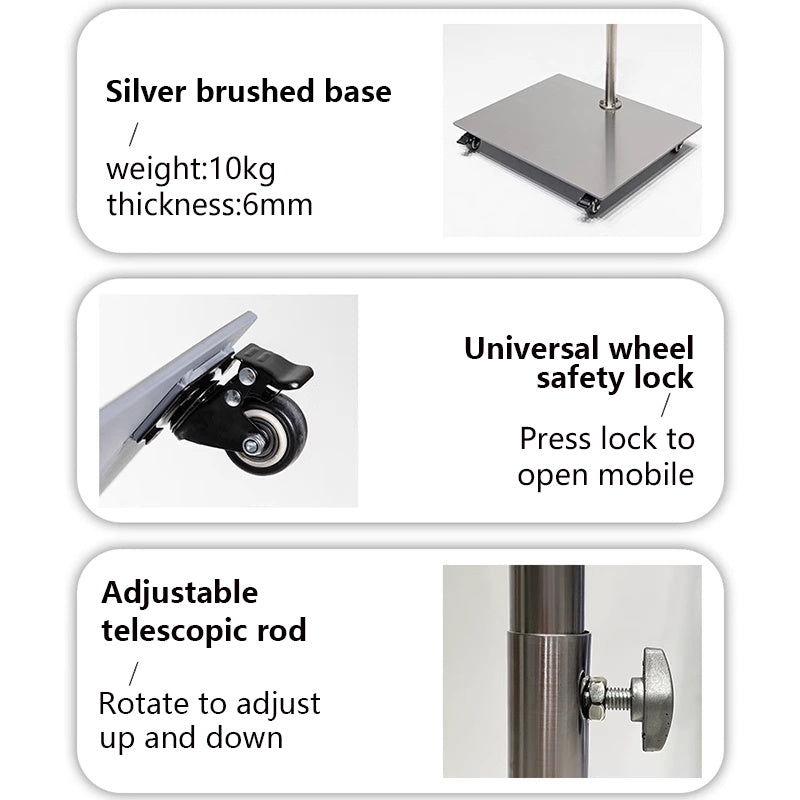 - Stable square metal base: High-end texture, easy mobility, and anti-tip design for safe retail environments.