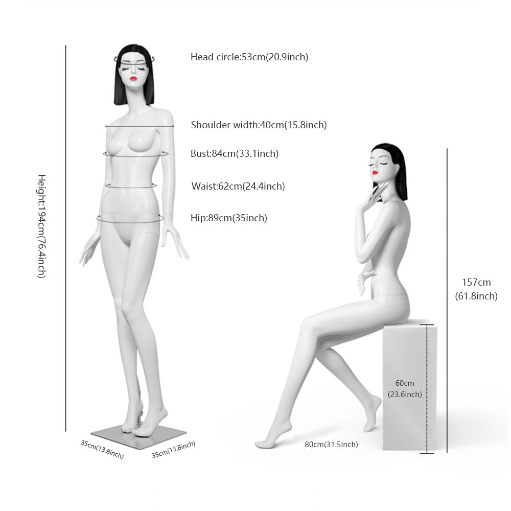 💟Style A Size : Head Circle : 53 cm(20.9 inch),Shoulder Width : 40 cm(15.8 inch),Bust : 84 cm(33.1 inch) ,Waist : 62 cm(24.4 inch),Hip : 89 cm(35 inch), Height : 194 cm( 76.4 inch), Base Length : 35 cm( 13.8 inch), Base Width : 35 cm( 13.8 inch).