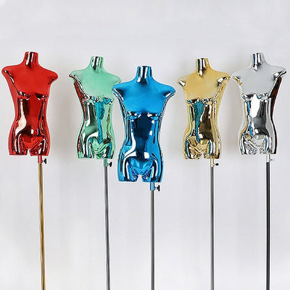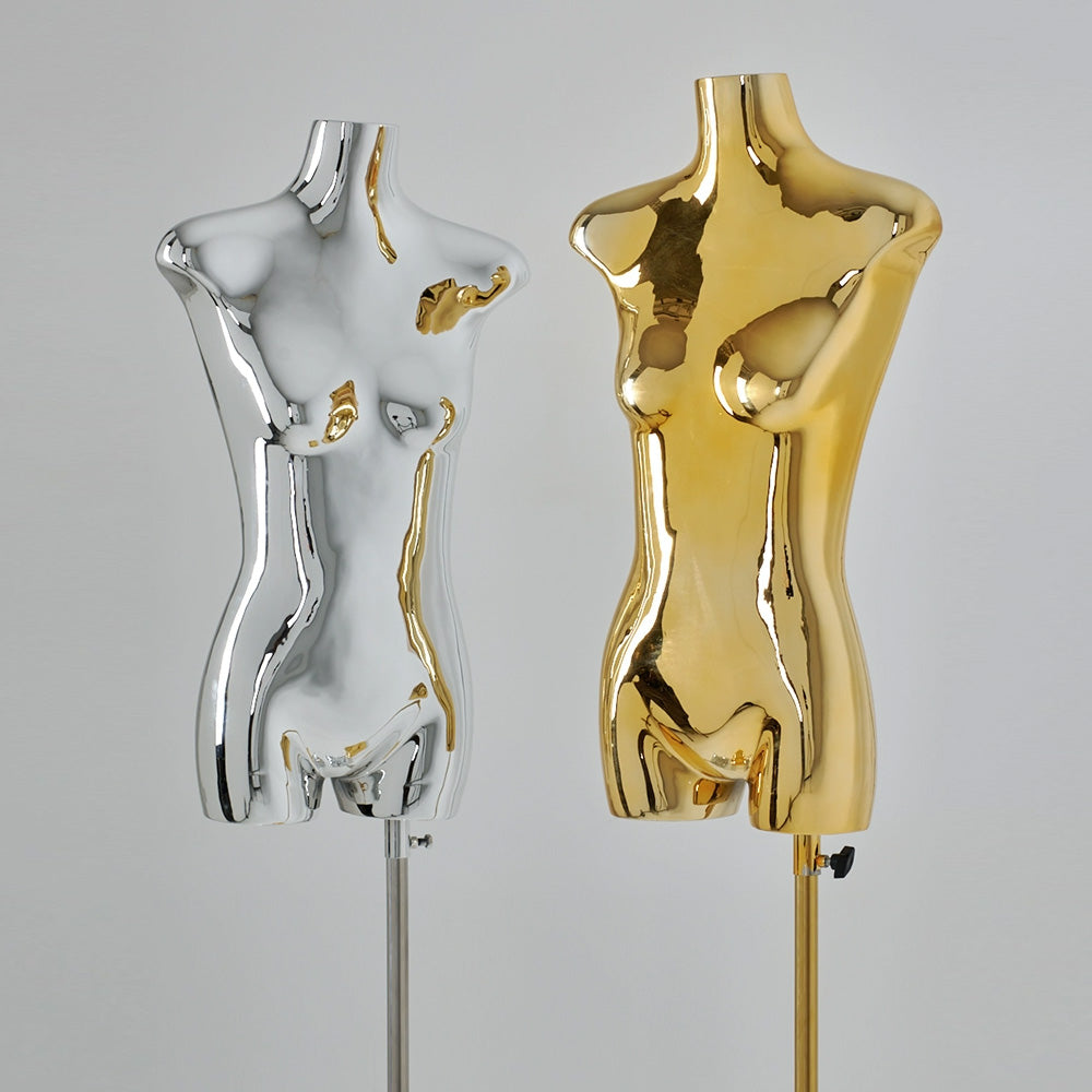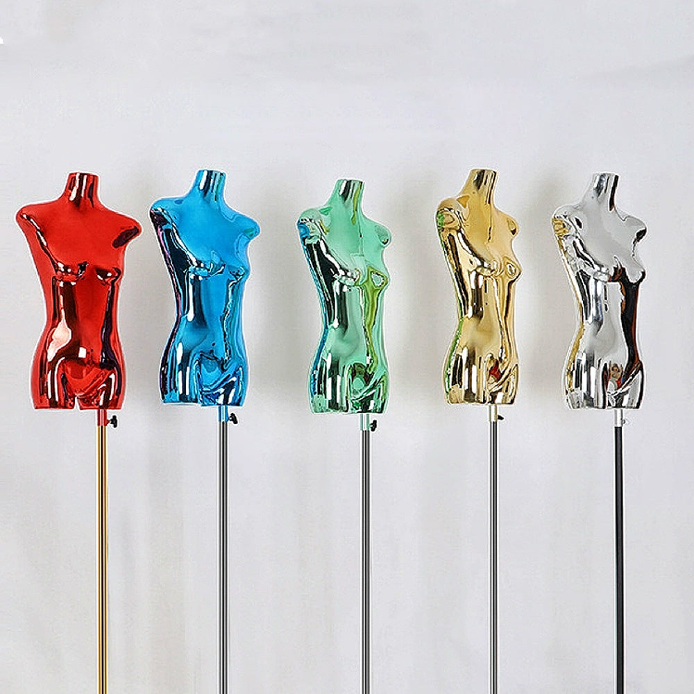 The product is 2023 new fashion high quality colorful electroplated flat shoulder female mannequin torso without head,have multi colors options for u chioce,they are very creative and fashion, use it to dress up your store can grab customer's attention,use it to dress up your window can make your window become more outstanding and gorgeous,use it to dress up your works can present perfect display effect, also can use it to display your products in a window, on a counter, on a display shelf, on the fashion show,on the trade show or on the floor, Ideal for sweaters, T-shirts, jackets,coats, dresses,shirts, blouses,pants,trousers,clothing accessories, tops and bottoms .