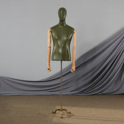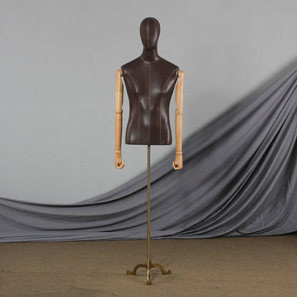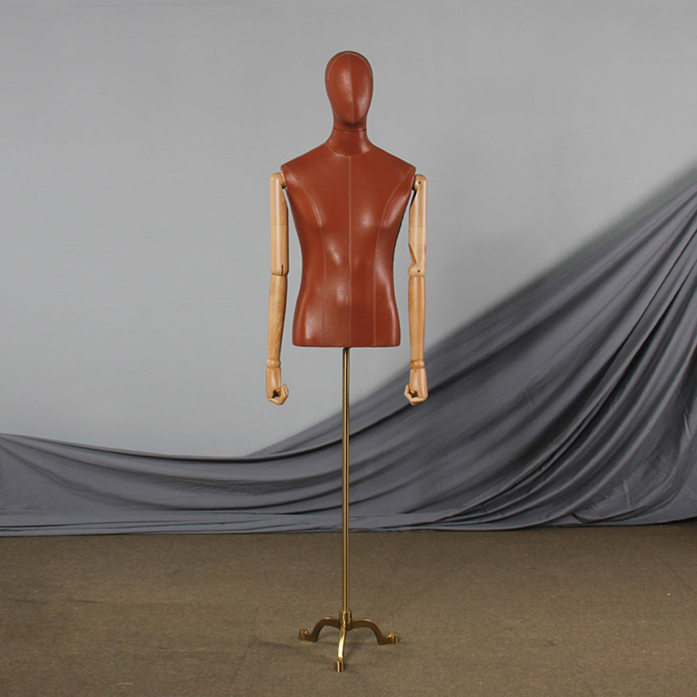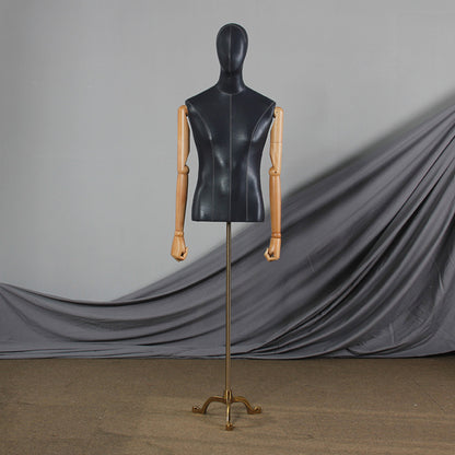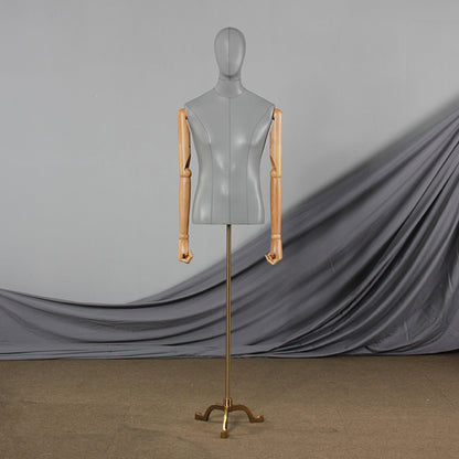 💟Style A: Male Mannequin Body+Head +Wooden Arms+ Gold Tripod Base.