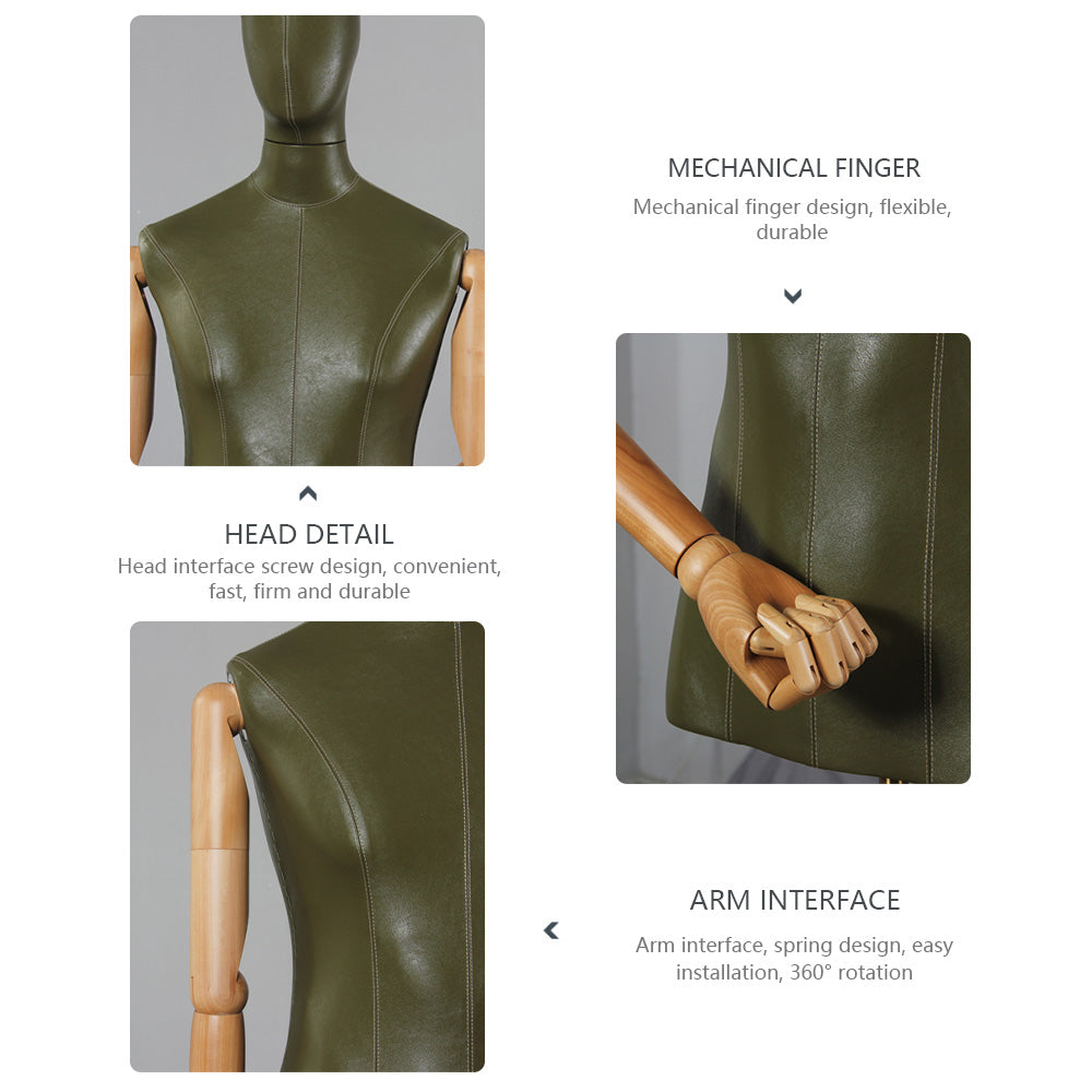 The product is new fashion high quality men leather mannequin torso stand,have multi color options for u chioce,with detachable wooden arms and detachable mannequin head,the design are very modern and fashion, use it to dress up your store can grab customer's attention,use it to dress up your window can make your window become more shiny and gorgeous,use it to dress up your works can present perfect display effect, also can use it to display your products in a window, on a counter, on a display shelf, on the trade show or on the floor, Ideal for sweaters, T-shirts, jackets, coats,suits, business gowns,blouses,clothing accessories,tops and bottoms.