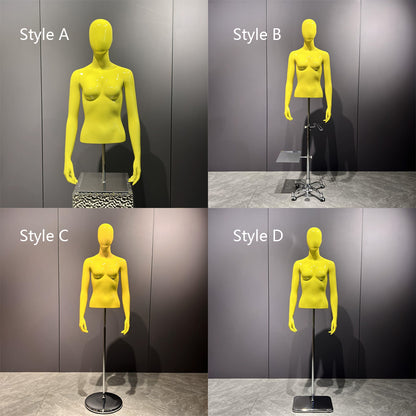 🔥3).Exquisite craftsmanship, selected materials,Elegant standing pose with a faceless egg head,glossy yellow finish,durable high quality fiberglass construction,it brings you a real feeling and better match your clothing to display,display women clothing and clothing accessories.