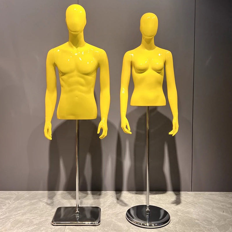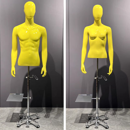 Jelimate Half Body Female Male Display Mannequin Torso,Yellow Fiberglass Men Women Dress Form Adjustable,Boutique Store Clothing Display Dress Form