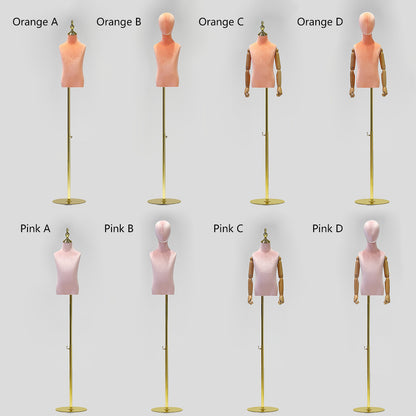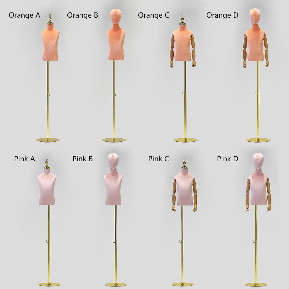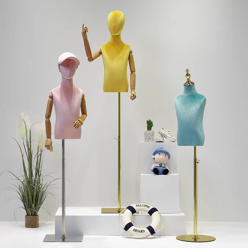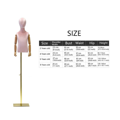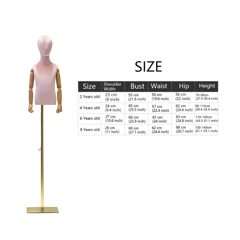 🔥1).Elevate your retail space with this premium half body kid mannequin torso, perfect for displaying both clothing and accessories. Available in four sizes—2 years old, 4 years old, 6 year olds and 8 year olds—this mannequin caters to a wide range of children's fashion. Its high-quality plastic construction is complemented by finely detailed wooden hands and a chic gold circular base, adding sophistication to your display. The mannequin is ideal for showcasing everything from hats, scarves, and sunglasses to jewelry and clothing. Whether you're styling a boutique window display, setting up an in-store display, or creating home decor pieces, this mannequin is the perfect choice. Available in multiple color options, it suits any design style and helps present your products in the best possible light.