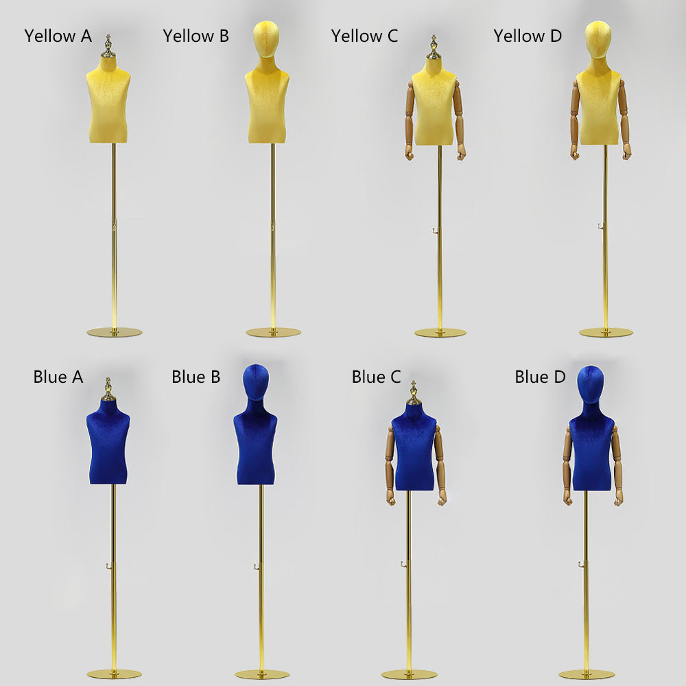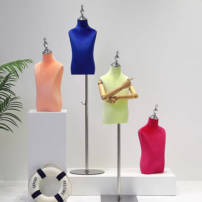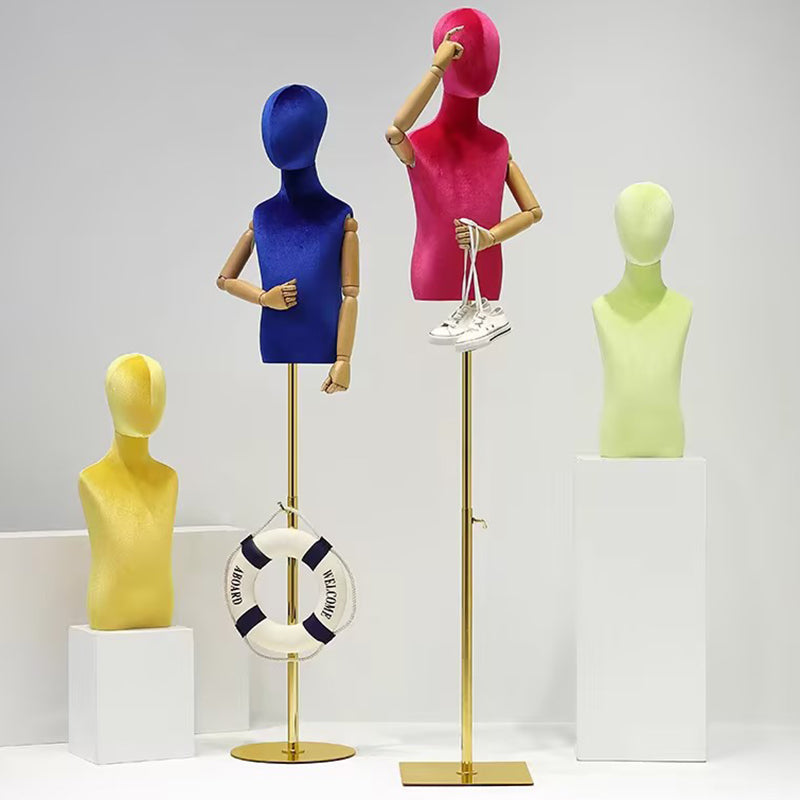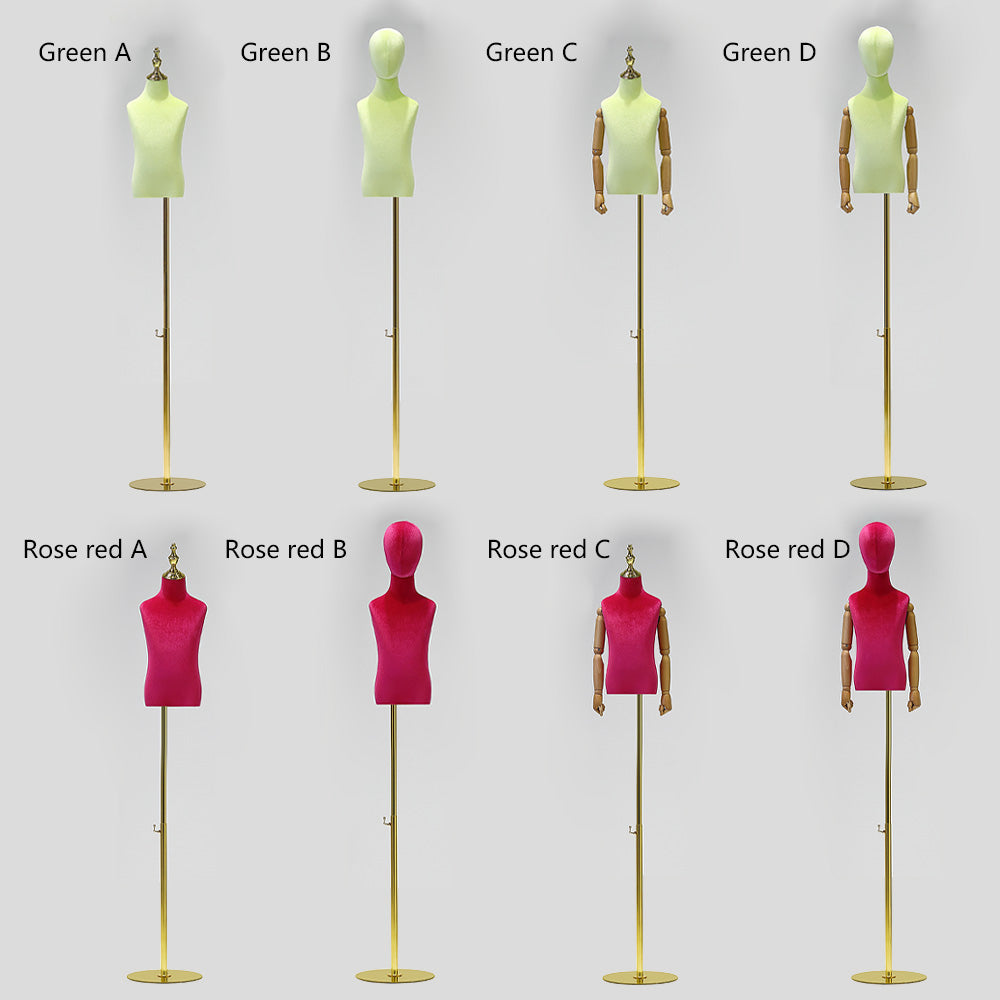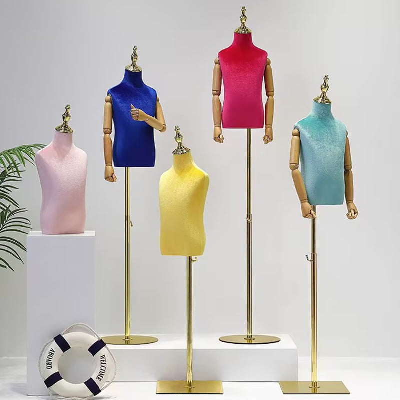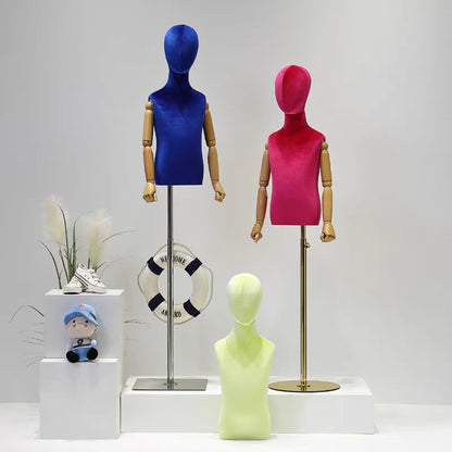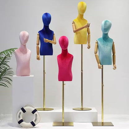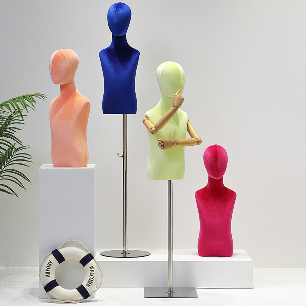 Jelimate Child Half Body Mannequin, Colorful Velvet Torso With Wooden Arms, Window Display Kid Model, Baby Dress Form, Unisex Child Display