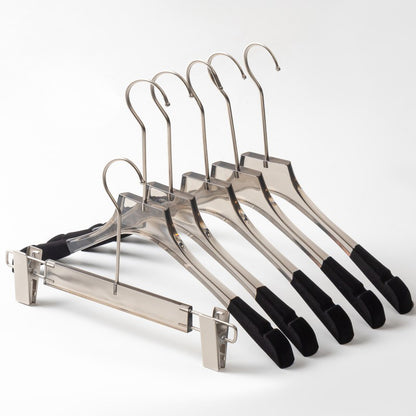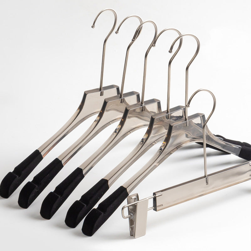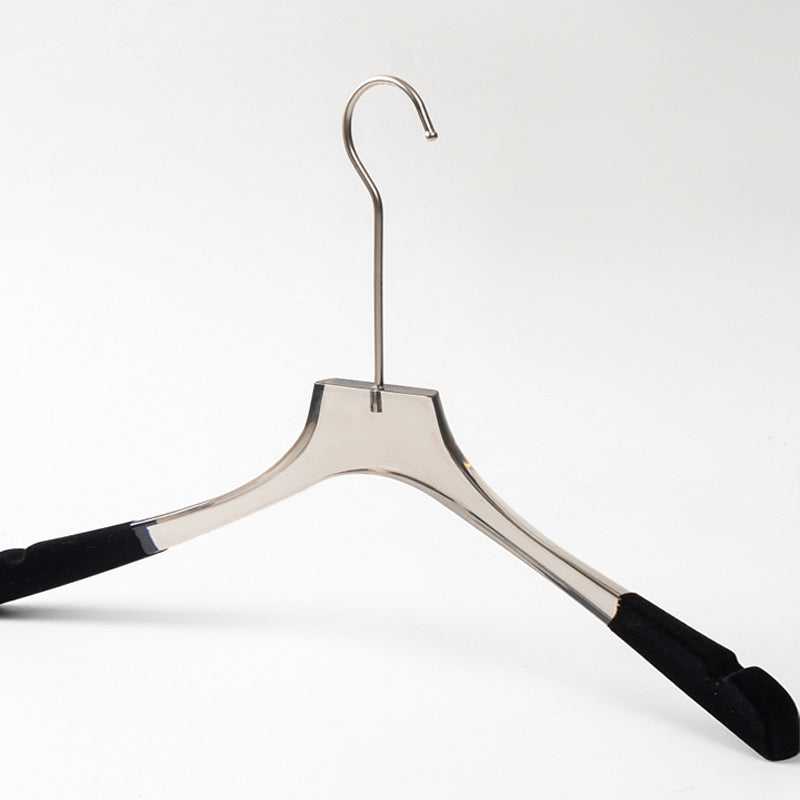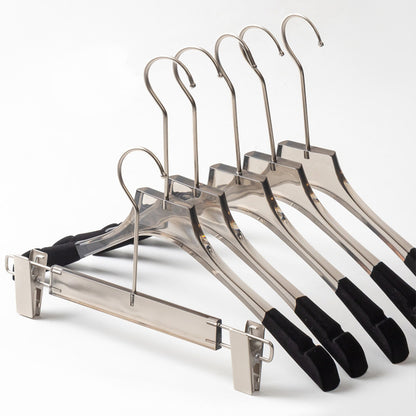 Jelimate Fashion Transparent Grey Acrylic Pant Clothing Hanger Special Clothing Store Velvet Shoulder Adult Clothes Display Hanger Crystal Clear Garment Hanger Simple Wedding Dress Hanger Clothing Display Rack