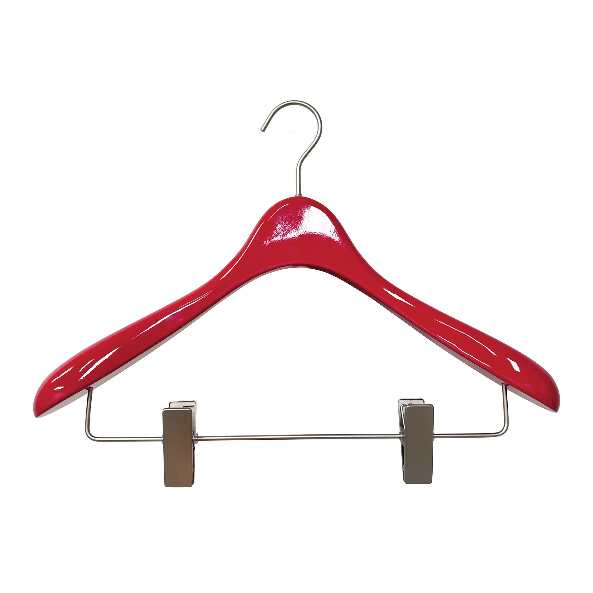 The product is Luxury Glossy Red wooden hanger for clothes Custom Branded Stylish Luxurious Wood Clothing Hangers For Display Hangers, have top hanger and top hanger with clips two style for u chioce,the design is very modern and simple,use it to dress up your store can grab customer's attention,use it to dress up your home can make your home become more cozy and gorgeous,use it to display your product or design can get better showing effect,also can use it to display your products in a window, on a counter, on a display shelf,on the trade show or on the boutique store,Ideal for sweaters, T-shirts, jackets, dresses, coat,blouses, pants,trousers,clothing accessories,tops and bottoms.