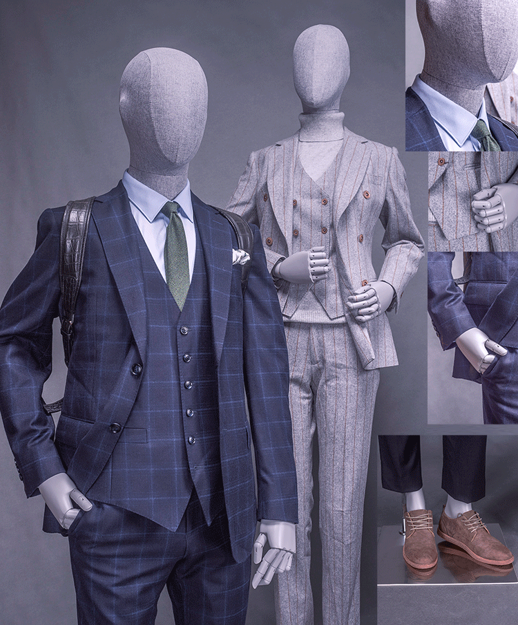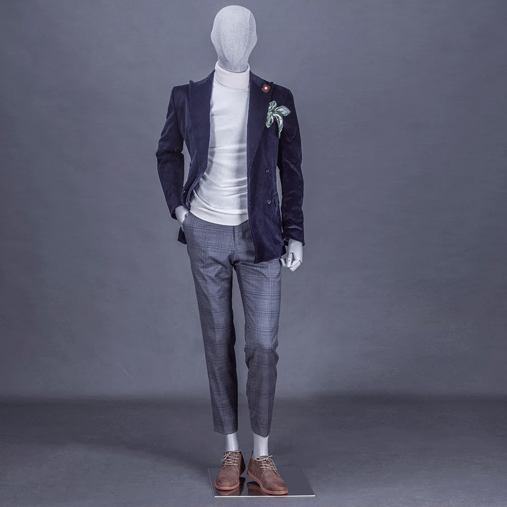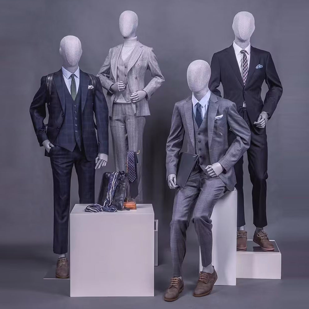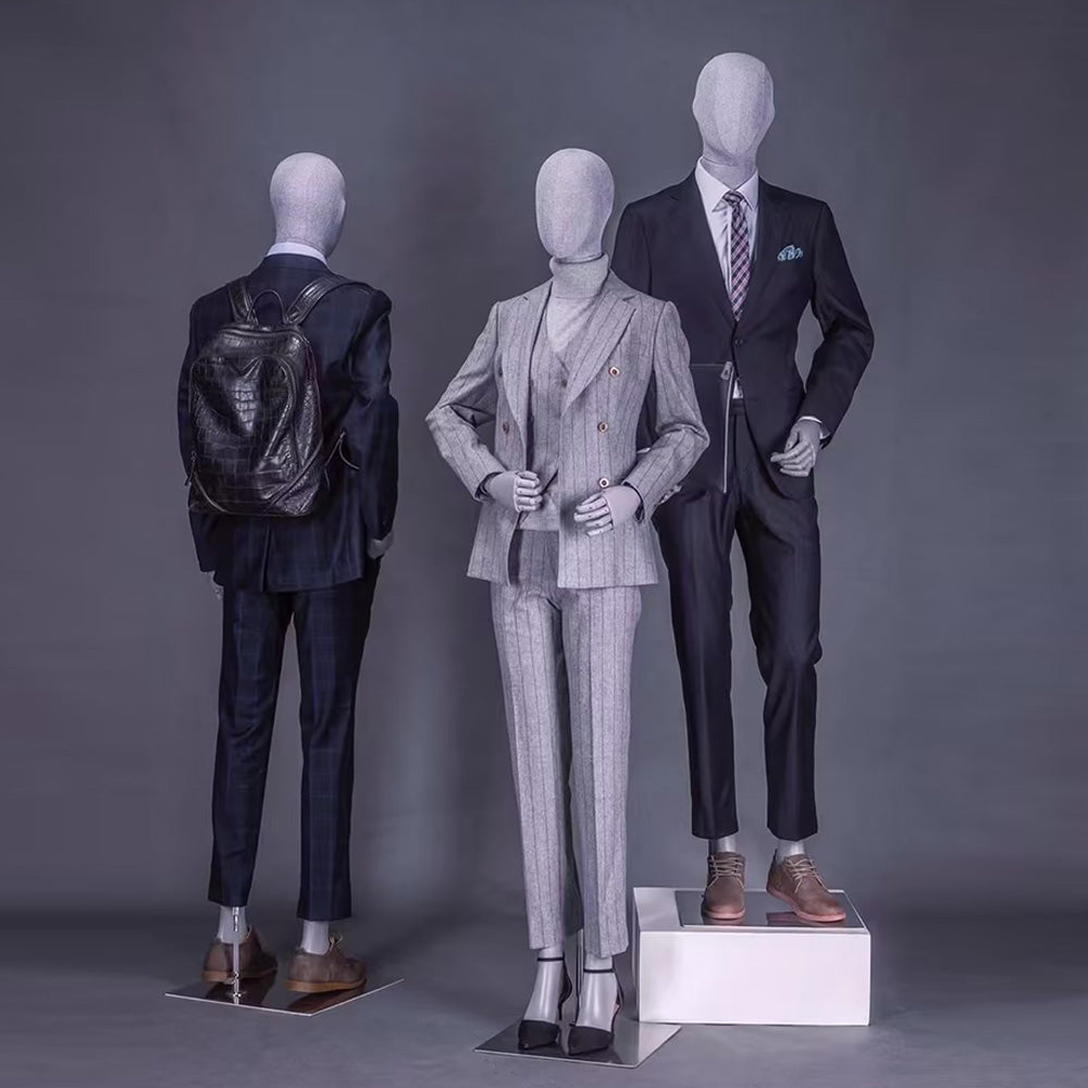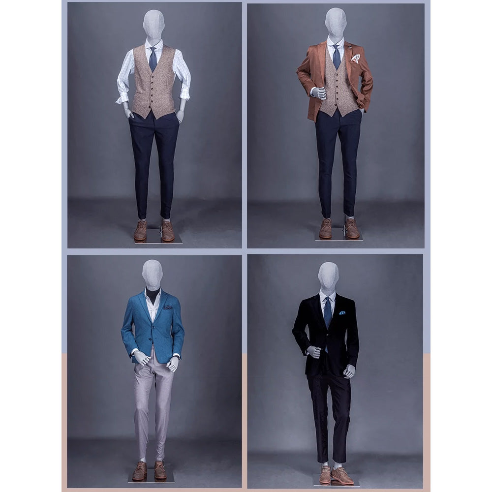 Introduce a touch of rustic elegance to your window displays with the Luxury Clothing Store Window Display High End Full Body Male Suit Mannequin, featuring a linen fabric wrapped in upper body and sleek painted in lower body. This mannequin perfectly highlights the sophistication of tailored suits, offering a stylish and unique way to showcase your menswear collection. The combination of natural linen fabric wrapped and smooth painted surfaces creates an eye-catching contrast that elevates any boutique display. Designed to emphasize the luxury of your menswear, this mannequin provides an elegant backdrop for tailored suits and high-end apparel,making it the perfect choice for boutiques looking to create stunning, attention-grabbing window setups. Elevate your store’s visual merchandising with this sophisticated mannequin, designed to make your suits stand out in style,also can use it to display your products in a window, on a counter, on a display shelf, or on the floor, Ideal for shirts, jackets, suits, coats,formal gown,shoes,ties,sportswear,blouses,pant,trouser, clothing accessories,tops and bottoms.