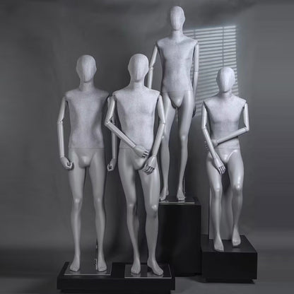 Jelimate Clothing Store Fiberglass Gray Male Full Body Mannequin,Fashion Window Display Men Display Model,Linen Fabric in Upper Body Painted in Lower Body,Men Suit Mannequin Clothing Display Dress Form