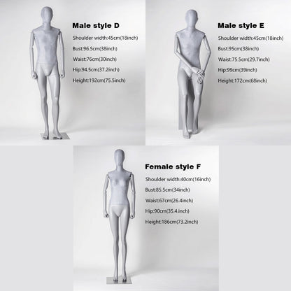 💖Male Style D : Shoulder Width : 45 cm(18 inch),Bust : 96.5 cm(38 inch) ,Waist : 76 cm(30 inch),Hip : 94.5 cm(37.2 inch),Height : 192 cm( 75.5 inch) ;