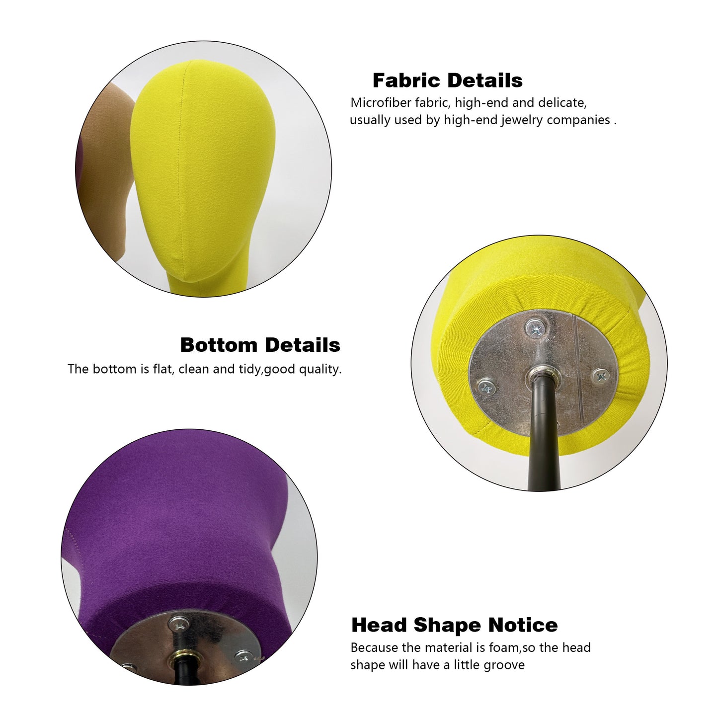 👏4.Enhance your display options with our exquisite high quality velvet mannequin heads, perfectly paired with durable black round bases. Choose from three stunning colors—bright yellow, warm brown, and deep purple—to create a striking visual impact for your store. These versatile mannequin heads are ideal for showcasing a variety of accessories, including hats, wigs, jewelry, and sunglasses. The velvet finish not only elevates the aesthetic appeal but also ensures your items are presented in an inviting and professional manner. Transform your retail space with these elegant and functional display mannequin head props!