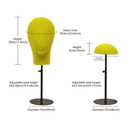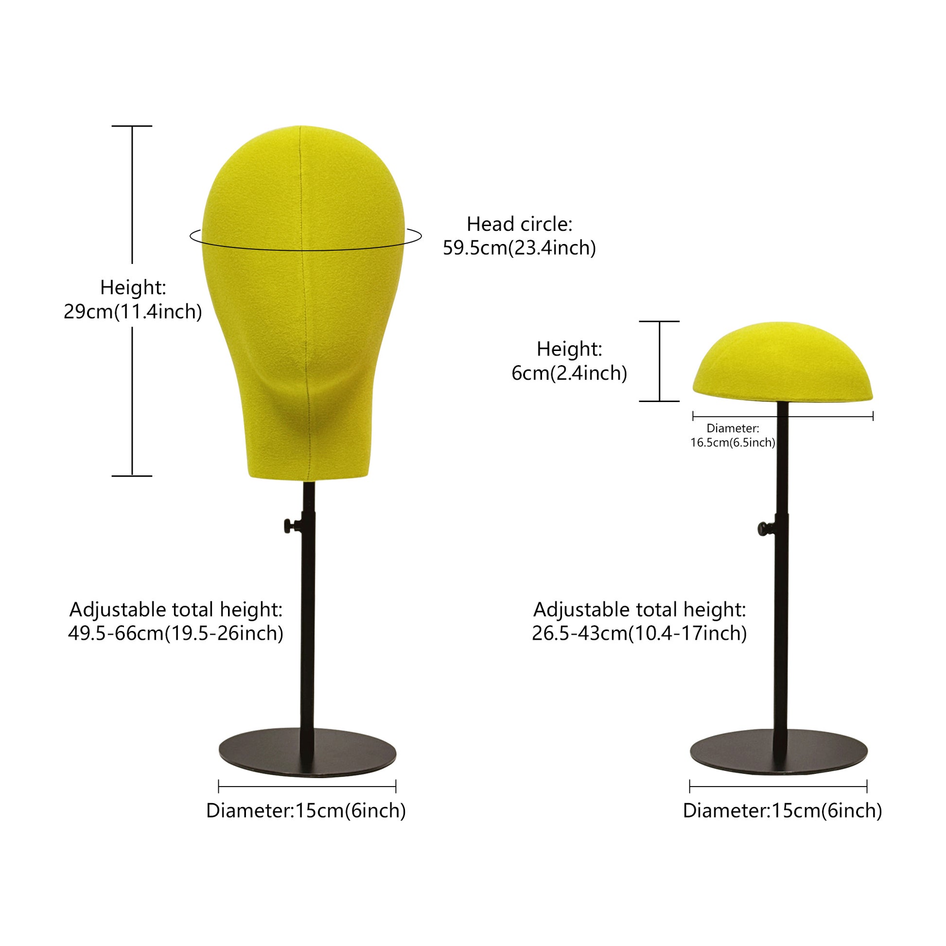 💕Head+Black Round Base: Head Circle: 59.5cm(23.4inch),Head Height :29cm (11.4inch),Adjustable Total Height: 49.5-66 cm(19.5-26 inch),Base Diameter: 15cm(6 inch) ;