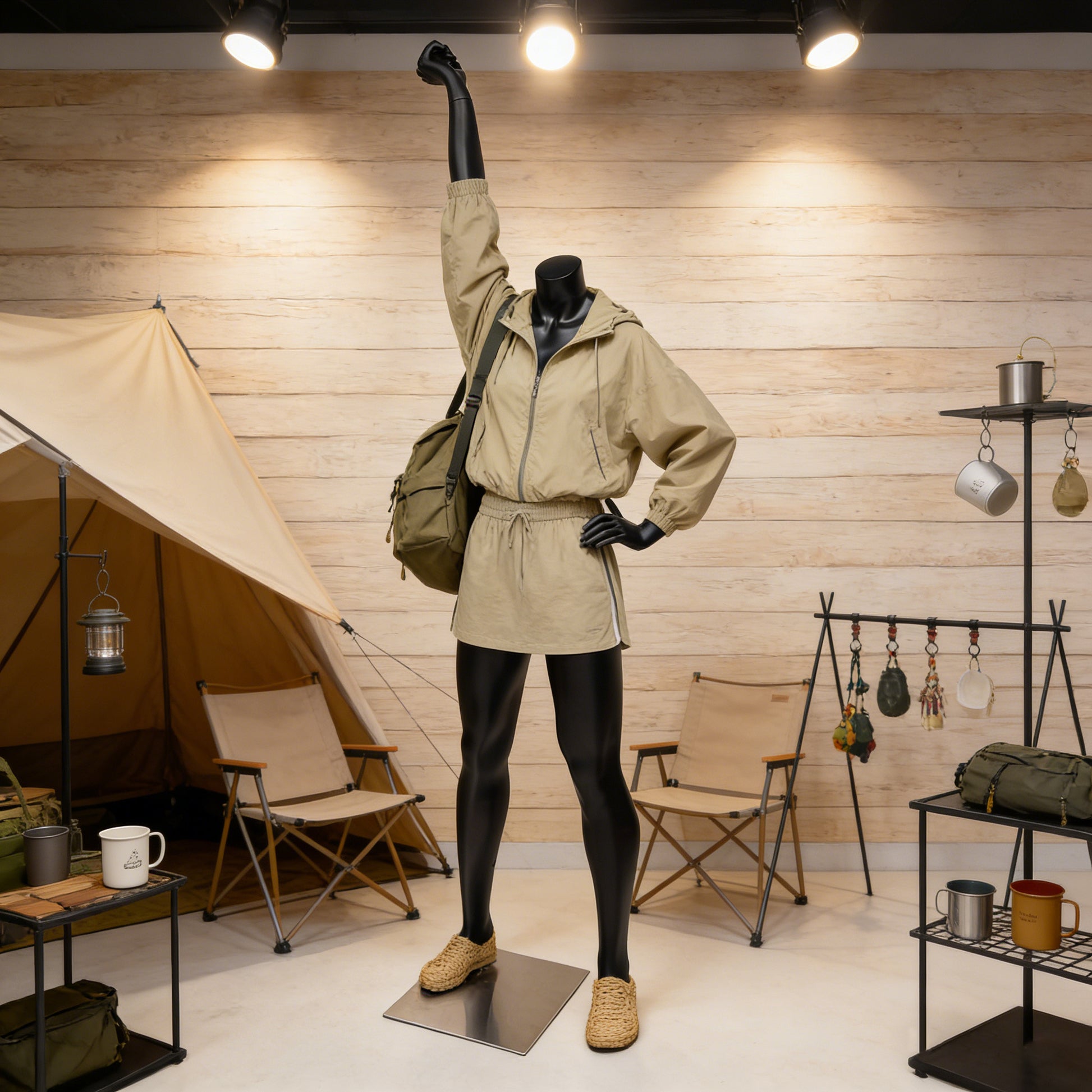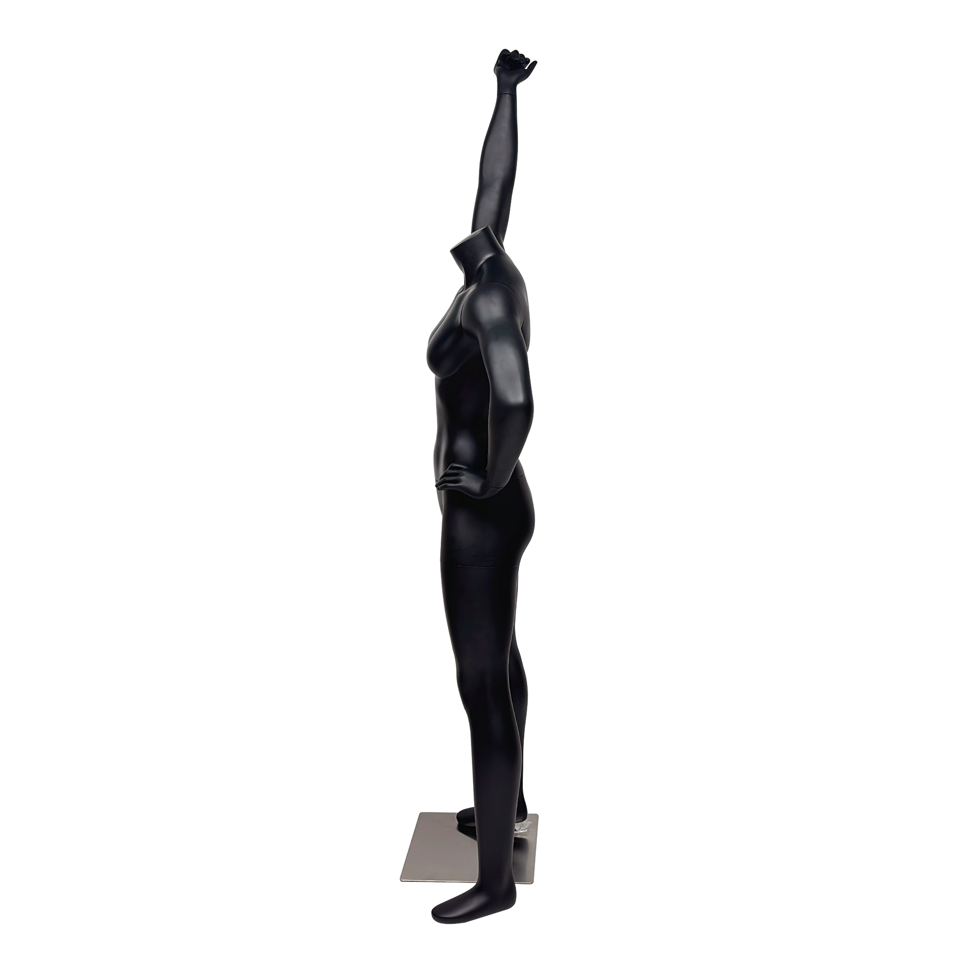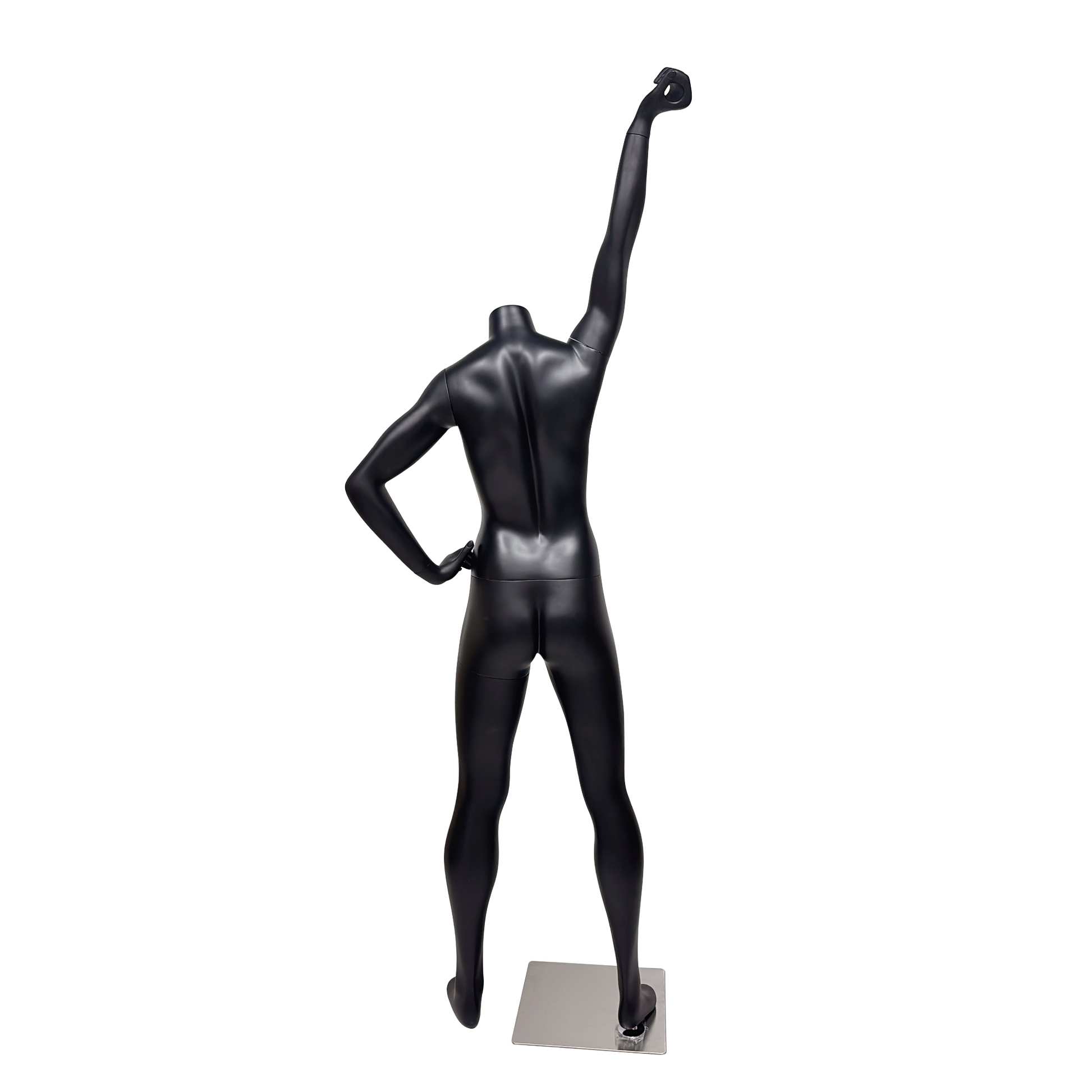Our headless design keeps focus on your merchandise while the athletic pose communicates performance and lifestyle. The professional matte black finish complements any brand aesthetic from minimalist to bold. Modular construction means easy storage, transport, and reconfiguration for seasonal displays.