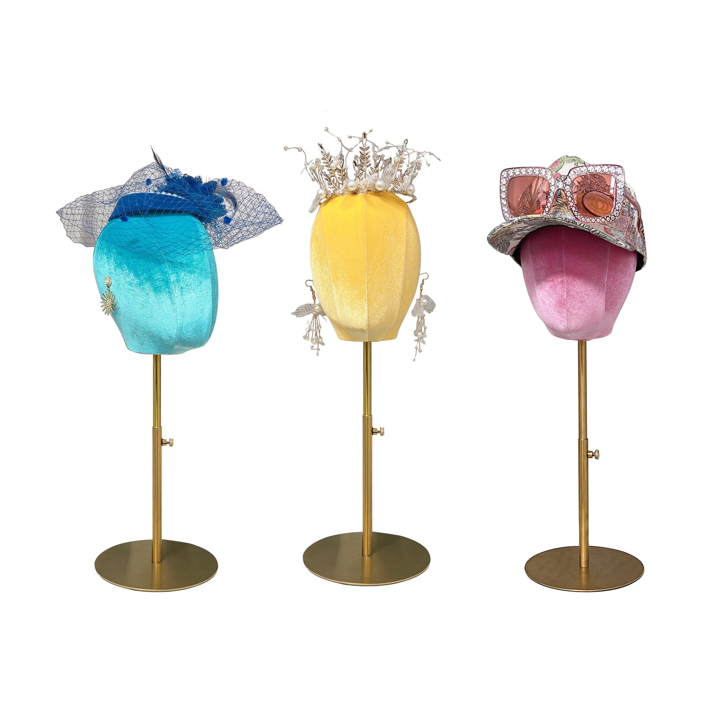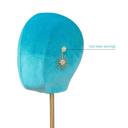 The is fashion colorful velvet head mannequin with metal gold base,the design is very exquisite and beautiful,use it to dress up your store can grab customer's attention,use it to dress up your home can make your home become more warm and gorgeous,use it to display your product or design can get better showing effect.Suitable for wig/hat/jewelry making and display. Great wig/hat/glasses holder, perfect for home or shop or salon.This head display is a great choice to showcase wigs, hats, headbands, and headpieces.
