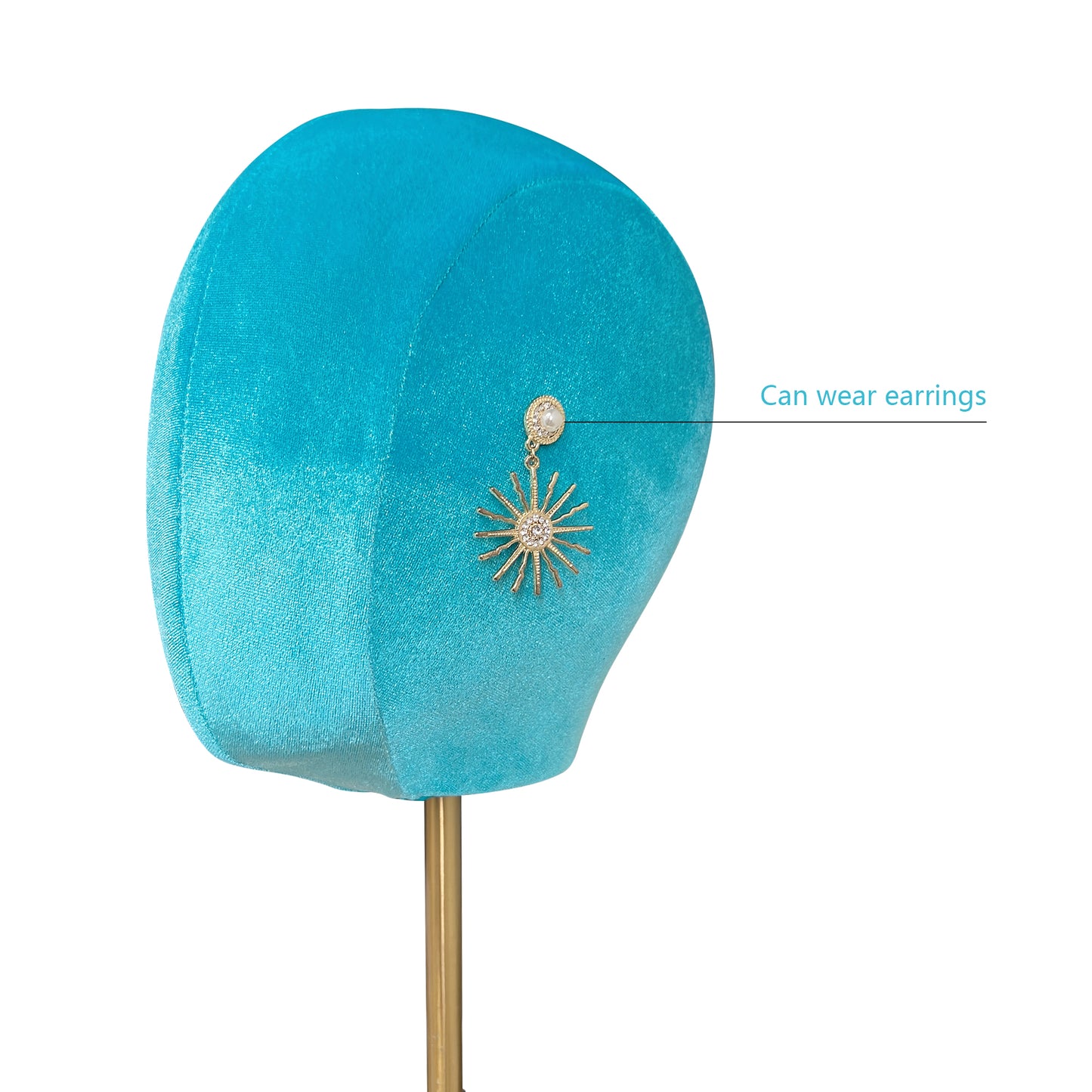 💟.Exquisite Hand-Sewing/Handmade is more delicate;The upper part of the mannequin is flexible, which allows display headdresses ,hat,scarf,cap,mask,earring,sunglasses,wig ,hair and jewelry etc. on the mannequin;There is a golden round metal base or velvet base supporting element at the bottom of the foam head, which makes the foam head very stable.
