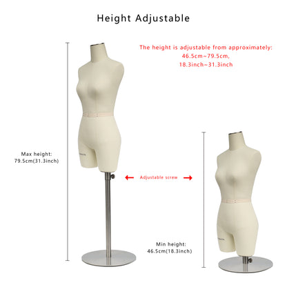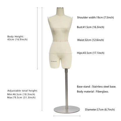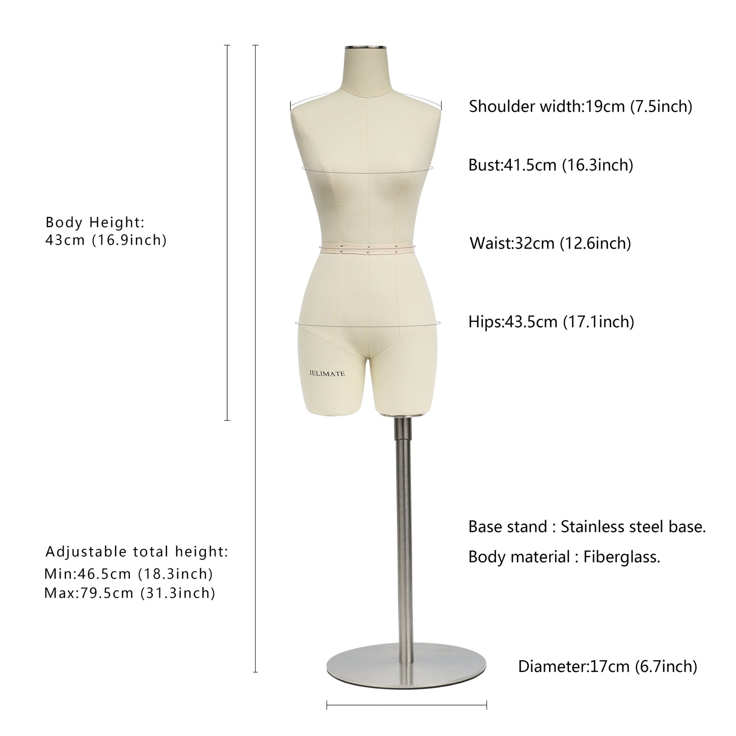 JELIMATE Female Half Scale Dress Form for Designers | Miniature Sewing Mannequin(Size 4)