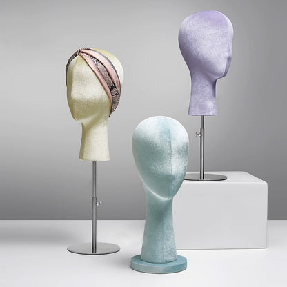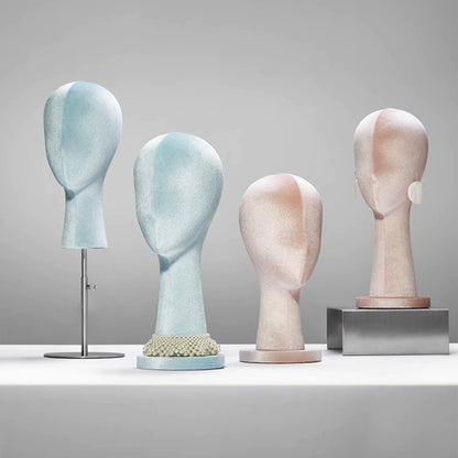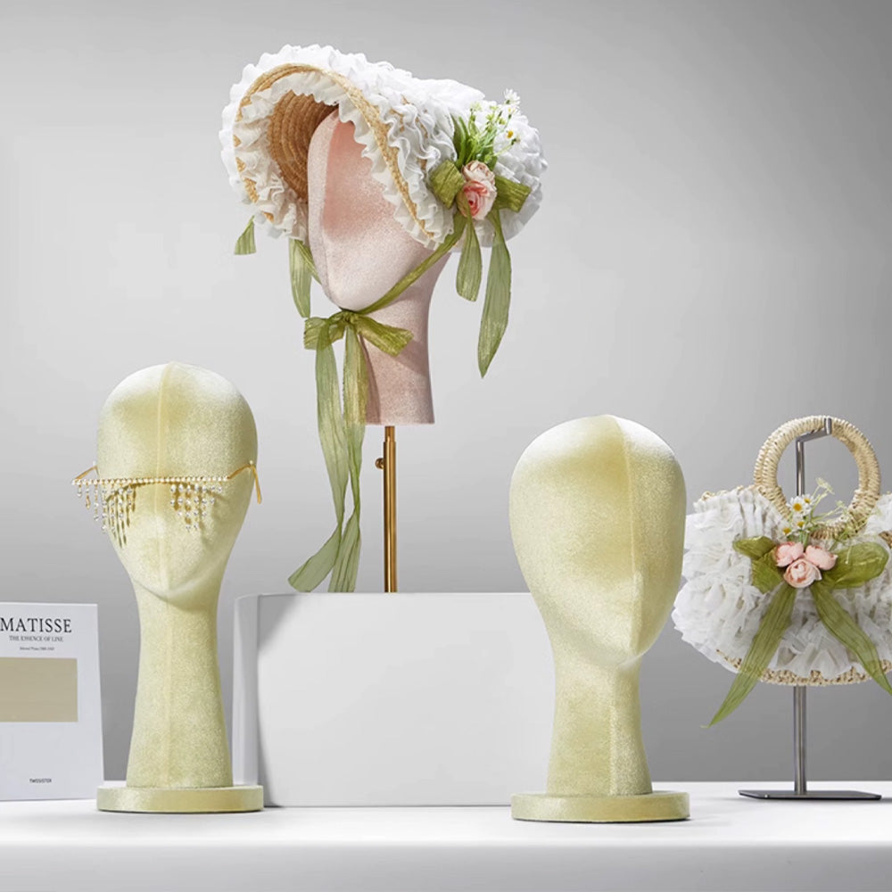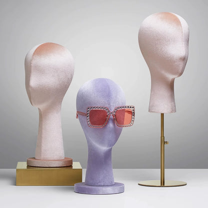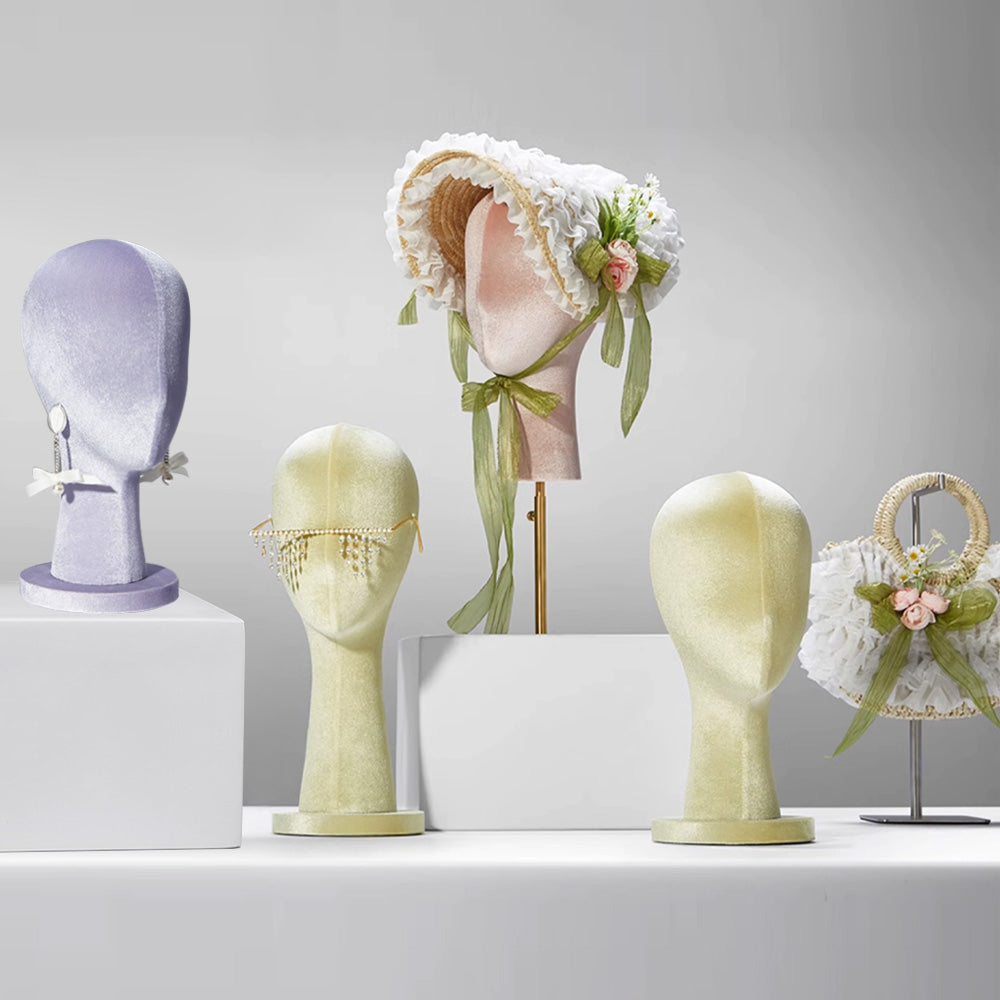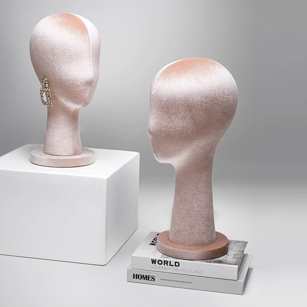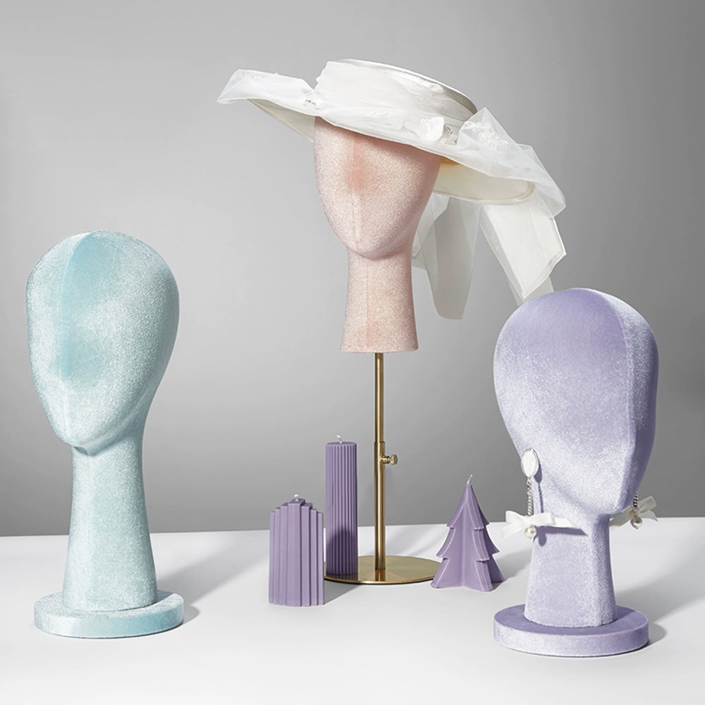 This high end velvet mannequin head is expertly crafted with fine attention to detail. Made from premium fiberglass and wrapped in soft, luxurious velvet fabric, it offers a smooth, comfortable texture ideal for displaying a wide variety of accessories. Featuring a delicate small nose and a well-finished base, it adds a realistic touch to your displays. This mannequin head can fully pinnable, also allows you to easily display accessories like hats, wigs, sunglasses, earrings, headbands, headphones and more, ensuring a polished, organized presentation. Available in multiple elegant colors, it’s perfect for boutiques, store displays, and window showcases. Whether used for accessories or as a chic decorative piece, this mannequin head will elevate your display and create a sophisticated atmosphere in any space.