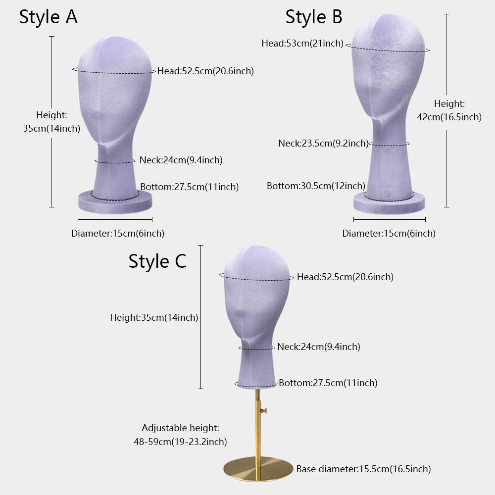 💟3.This luxury velvet fabric mannequin heads are made by high quality fiberglass material, wrapped in high end velvet fabric for an upscale, refined look. The small nose and carefully detailed base add a realistic touch, making it perfect for displaying fashion accessories such as hats, wigs, sunglasses, and earrings. Choose from a variety of beautiful colors to suit your boutique, store window, or home décor. This versatile mannequin head is ideal for enhancing your product displays or adding a touch of elegance to any room, whether you're showcasing jewelry, headbands, sunglasses ,wig,hat,headphone or other stylish accessories.