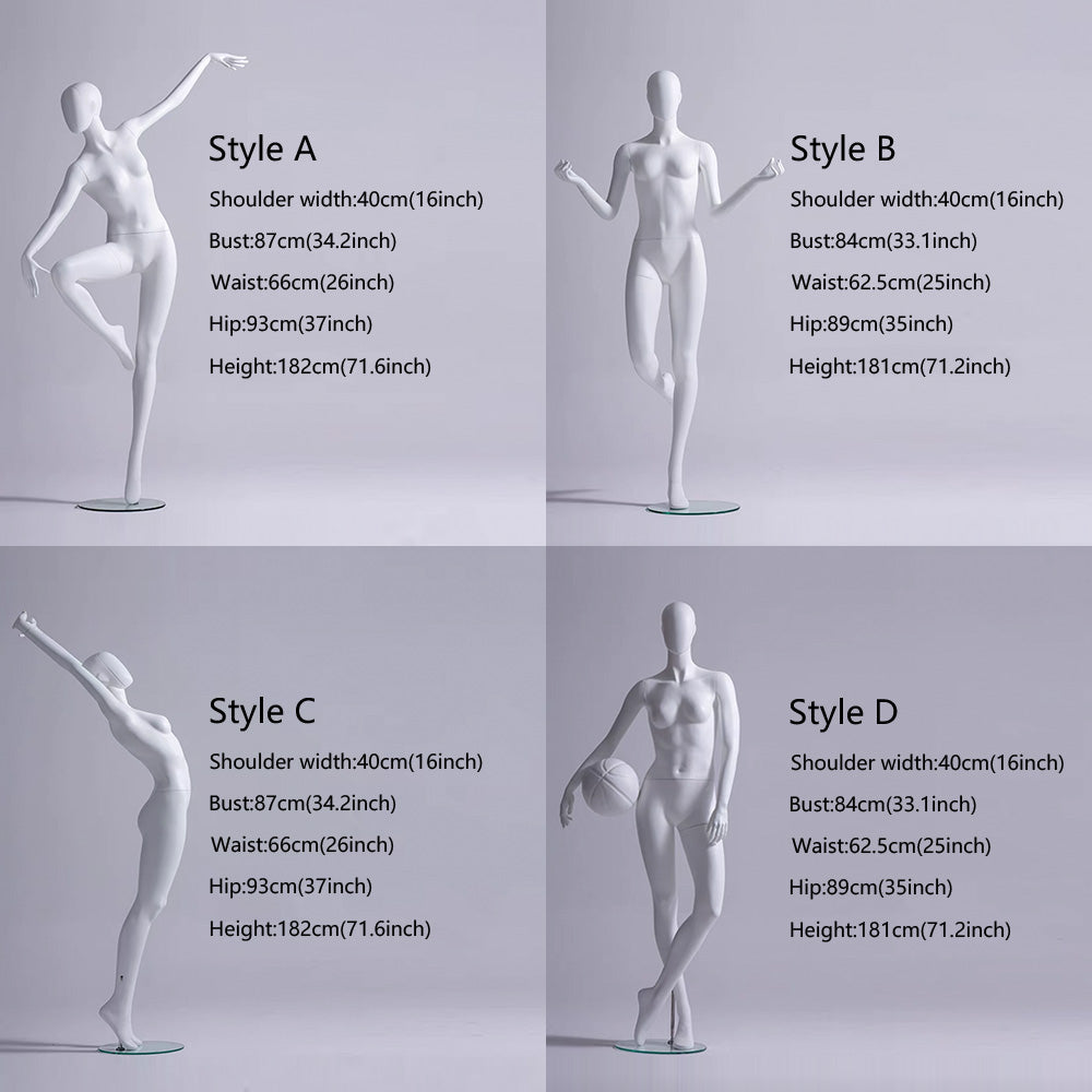 Elevate your store displays with our luxury female full body yoga sport mannequin, made from high quality fiberglass to ensure both durability and style. Featuring four different styles, this mannequin is perfect for showcasing clothing and clothing accessories such as scarves, sunglasses,necklaces and so on. Its minimalist yet modern design complements any fashion retail space, whether it’s for an in-store display or a striking window presentation. Designed to highlight the flow and fit of clothing, this mannequin is a must-have for apparel store,sport store and accessory stores looking to create dynamic and stylish displays that captivate customers,also can use it to display your products in a window, on a counter, on the home,on the office,on a display shelf, on the trade show or on the floor,Ideal for sweaters, T-shirts, jackets, suits,gowns,blouses, pants ,trourers,clothing accessories,tops and bottoms.