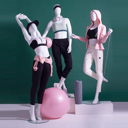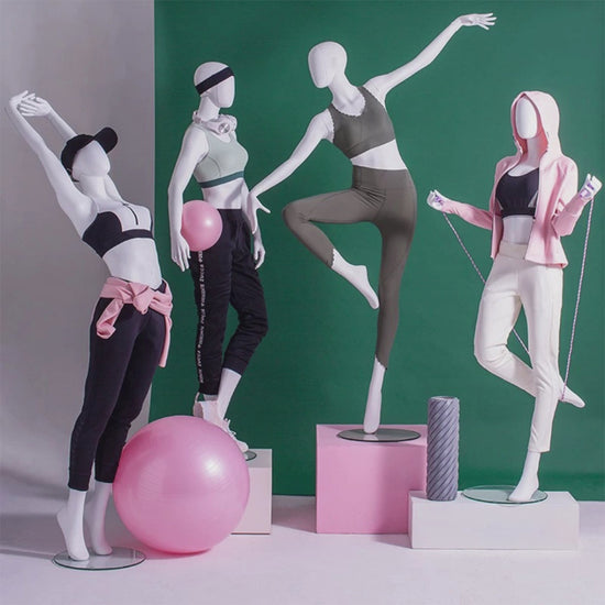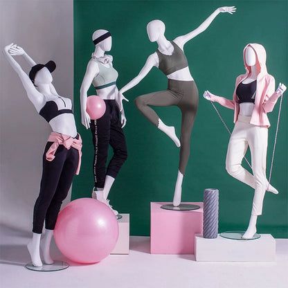 🔥2).Our high end female full body yoga mannequin is made from fiberglass, offering a lightweight yet sturdy structure that ensures long-lasting performance. The smooth finish gives it a sleek, modern look, making it a perfect fit for any fashion-forward retail environment.This female full body mannequin comes in four different styles, each offering a unique way to display your merchandise. Whether you need a dynamic pose for activewear or a relaxed stance for casual attire, you can choose the perfect model for your needs. Its flexible and versatile design makes it ideal for showcasing everything from sportswear to fashion accessories.