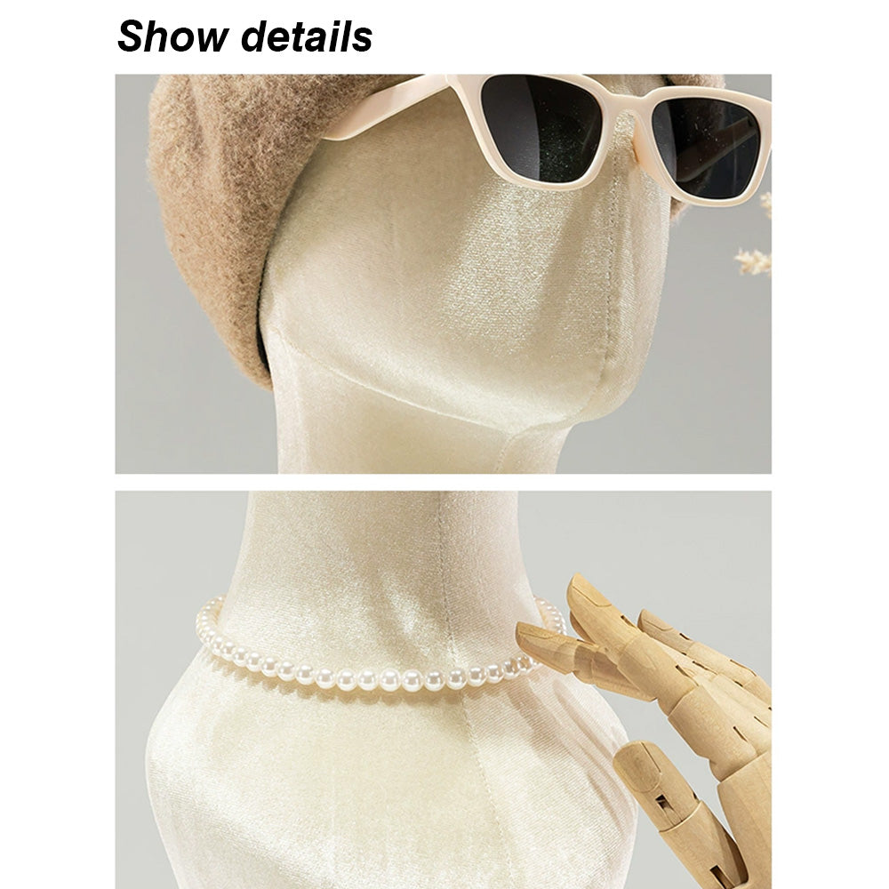 👏6.The upper part of the mannequin is flexible, which allows display headband,hat ,scarf,sunglasses,wig ,hair,necklace and jewelry etc. on the mannequin.