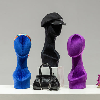 Jelimate Luxury Colorful Velvet Mannequin Head Long Neck Model,Manikin Head Mannequin Stand Wig Display Stand,Jewelry Headband Scarf Hat Display Head Dress Form