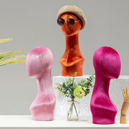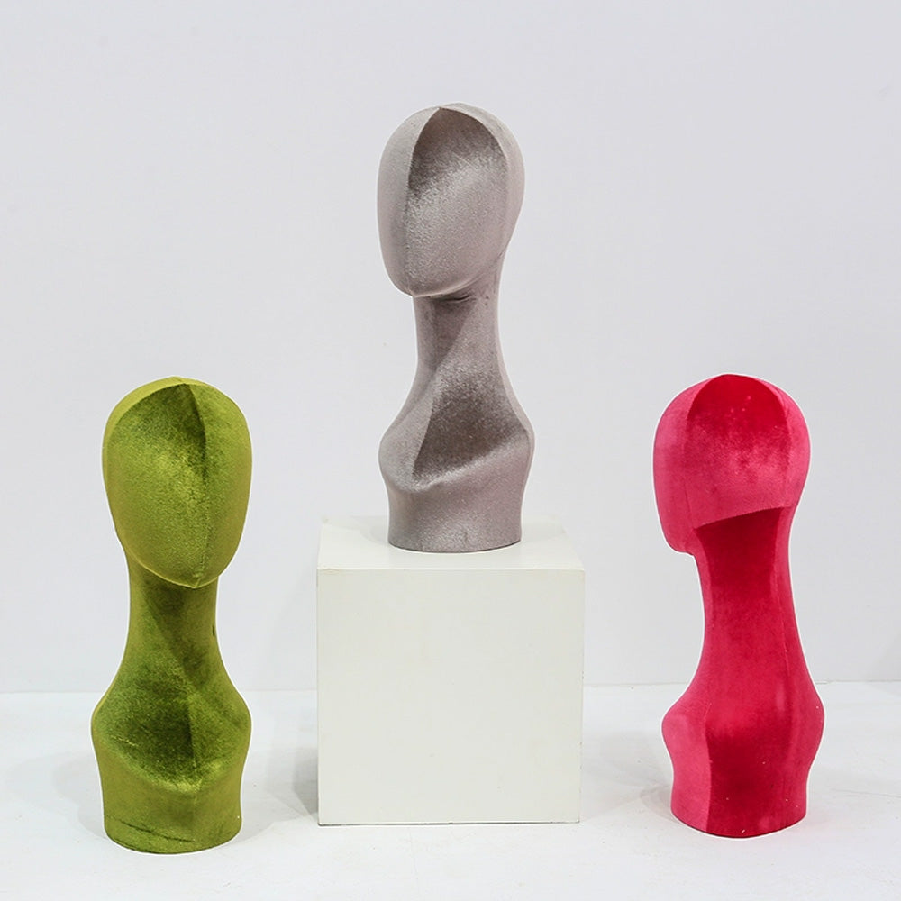 The product is New Fashion high end store window omnipotent and all-match colorful velvet long neck mannequin head,multi-purpose in one hand,everything can be display,have multi color options for u chioce,the design is very modern and simple,use it to dress up your store can grab customer's attention,use it to dress up your home can make your home become more cozy and gorgeous,use it to display your product or design can get better showing effect.This item is great for holding or displaying wig,necklace,hair,headband,hat,crown and scarves, along with other jewelry and fashion accessories. Wonderful accent piece for any home decor or retail display or store display!
