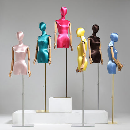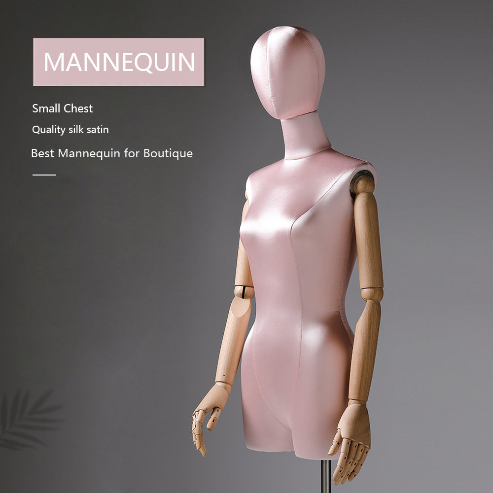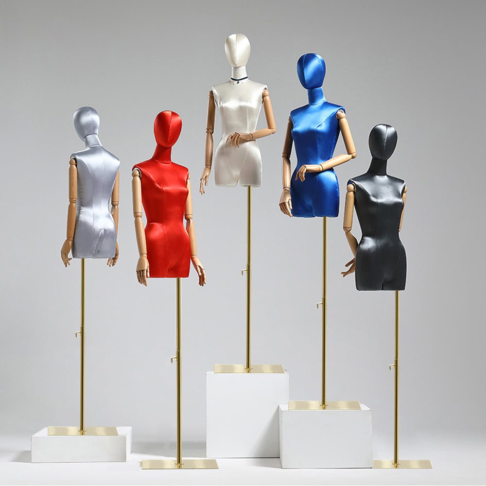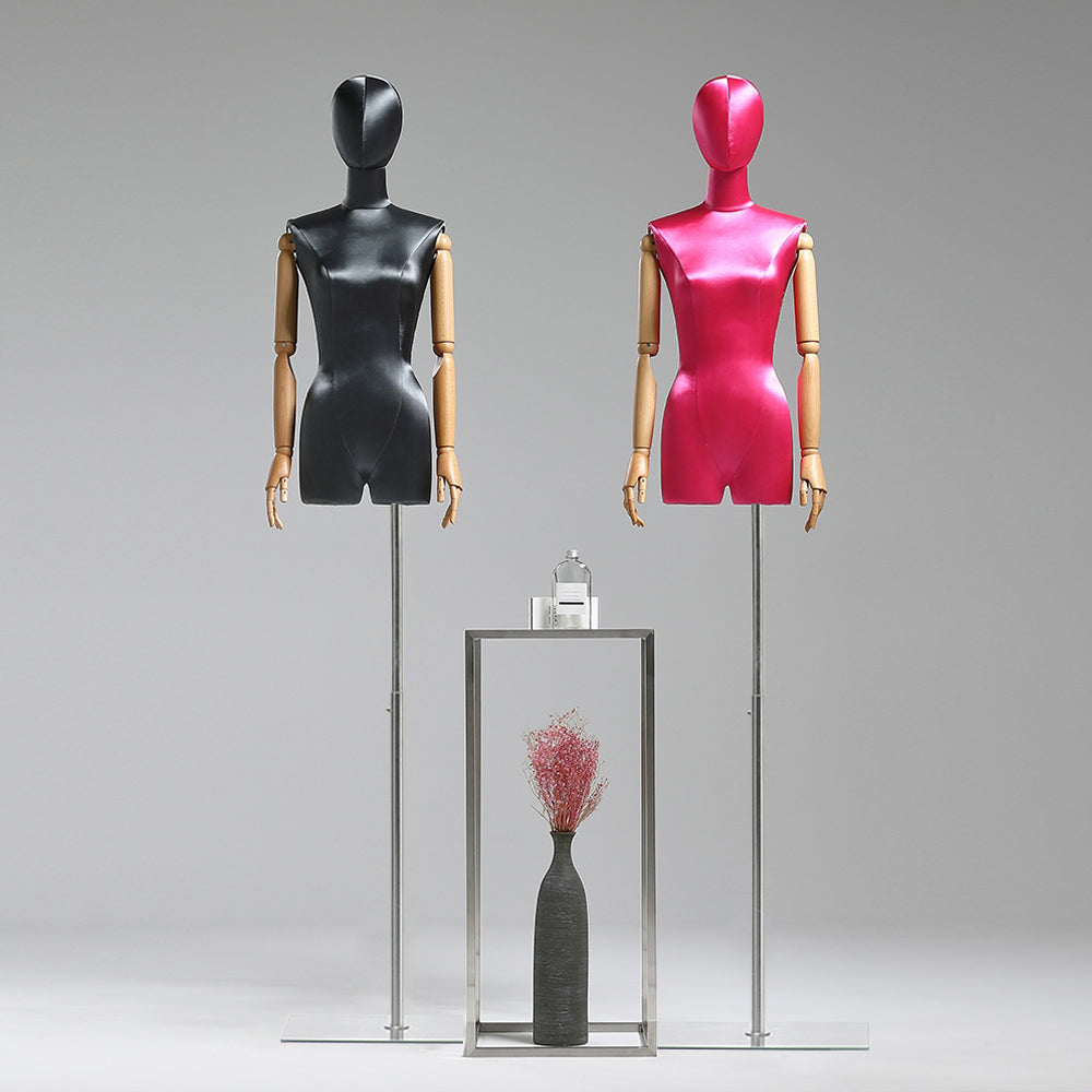 Jelimate Half Body Female Mannequin Torso Dress Form,Satin Fabric Mannequin Torso With Wooden Hands,Women Upper Torso Mannequin For Clothes Model,Clothing Boutique Store Window Display Mannequin