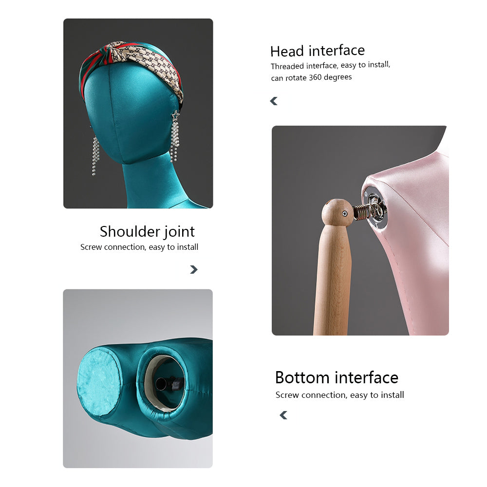 👏3.This high end female half body mannequin is beautifully wrapped in smooth satin fabric, offering a luxurious look that enhances the display of any fashion accessory or garment. The satin finish adds a sophisticated touch, making it perfect for showcasing everything from elegant dresses to trendy sunglasses and handbags.This mannequin is designed with high quality wooden hands that offer a natural look, making it perfect for showcasing accessories like bags, scarves, hats, and jewelry. The wooden hands are delicately crafted to hold items securely, while the posable fingers add a realistic touch, enhancing the overall appeal of your display.