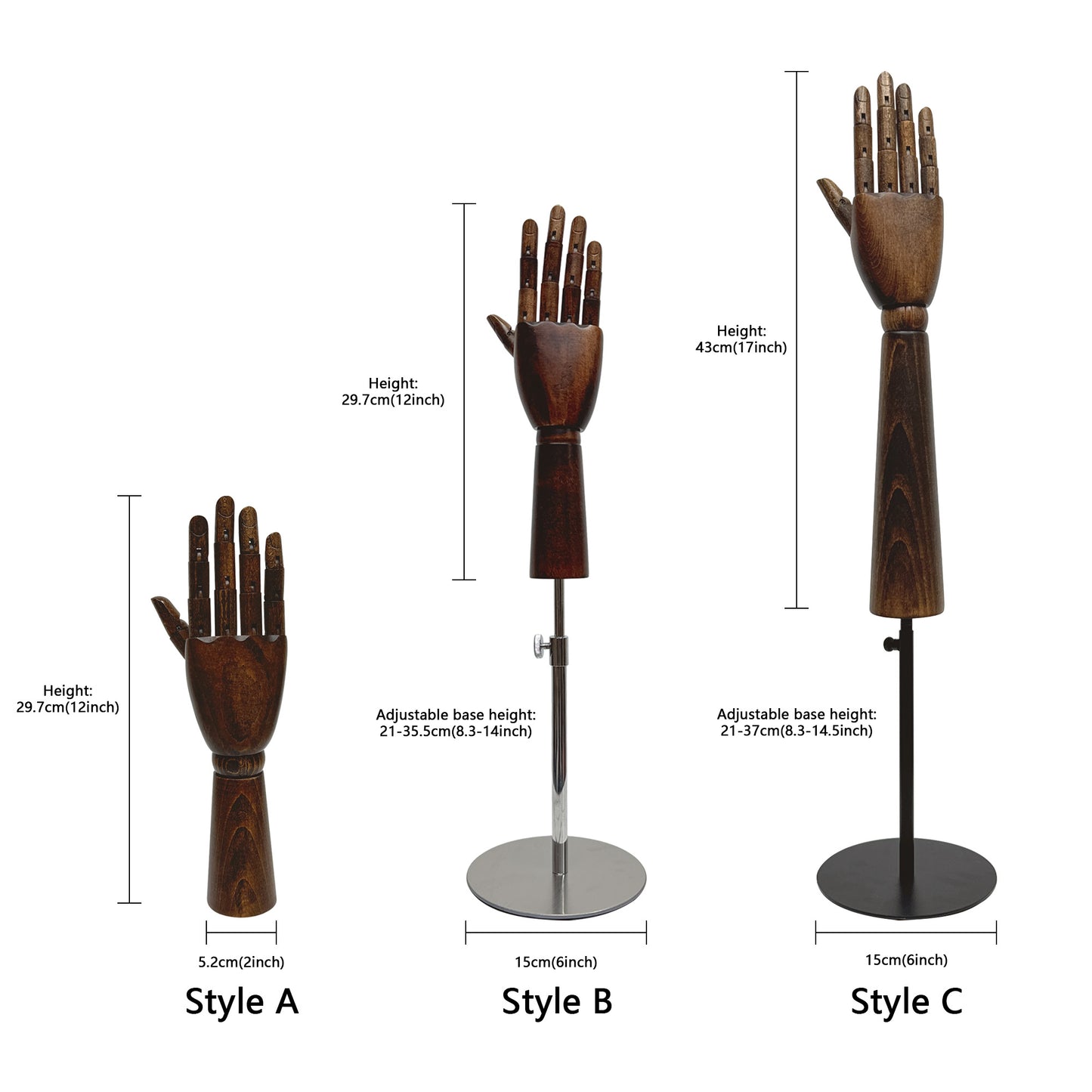 💟Style C Hand Size: Hand Height : 43 cm ( 17 inch ),Base Diameter : 15 cm ( 6 inch ), Adjustable Base Height : 21-37 cm ( 8.3-14.5 inch ).