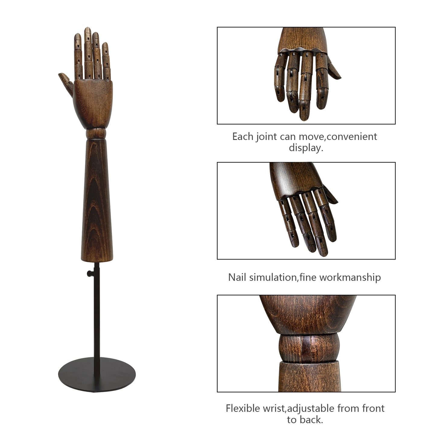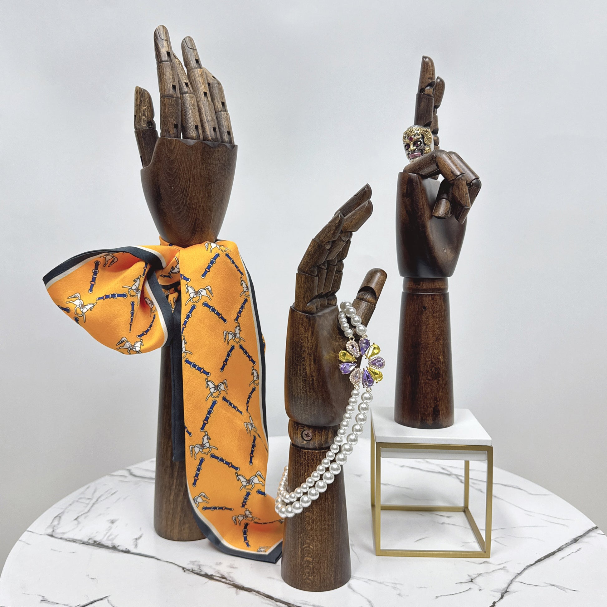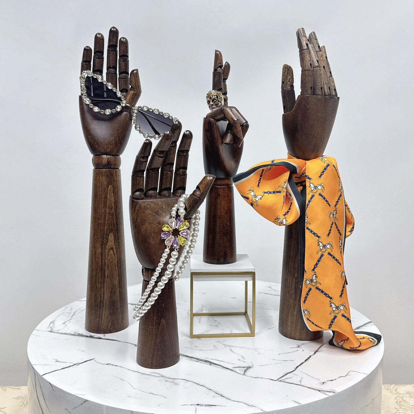 👏2).Exquisite Wood Finish: Each display hand is meticulously crafted from premium solid wood, offering a rich, natural finish that complements a range of store decors. This high-quality wood provides a luxurious, earthy tone, giving each display a warm and inviting look that appeals to customers.These hands are not only functional but also serve as beautiful decor pieces for boutique spaces. Ideal for window displays, they add a stylish and refined look to any setup, drawing passersby into the store and highlighting new or seasonal items.