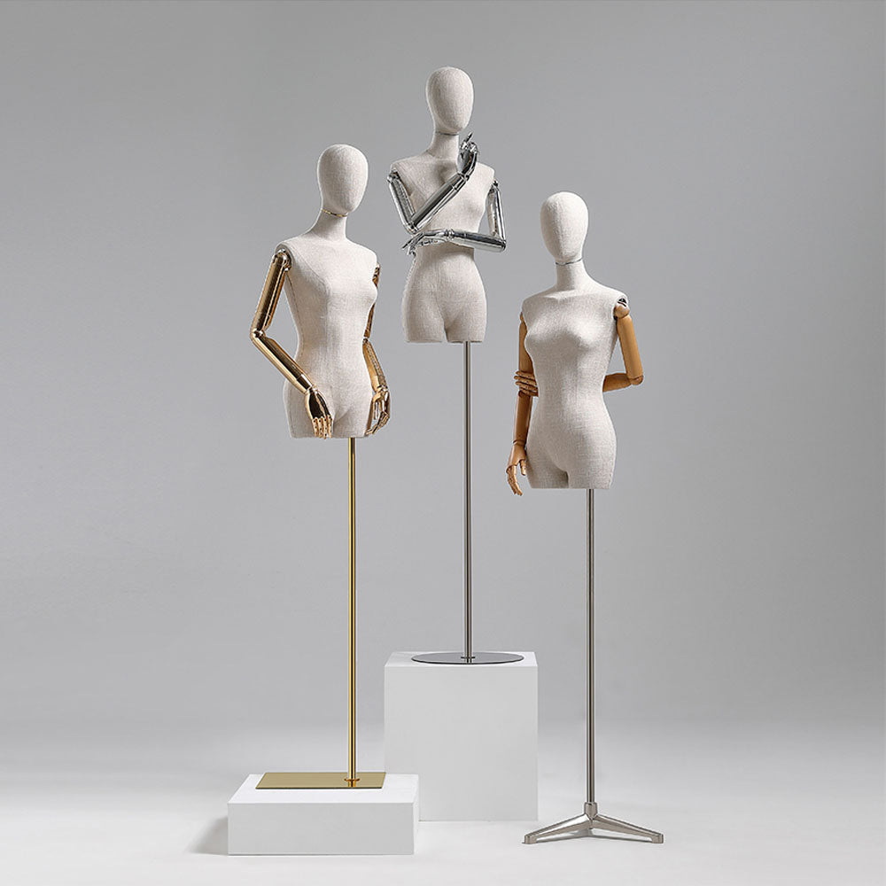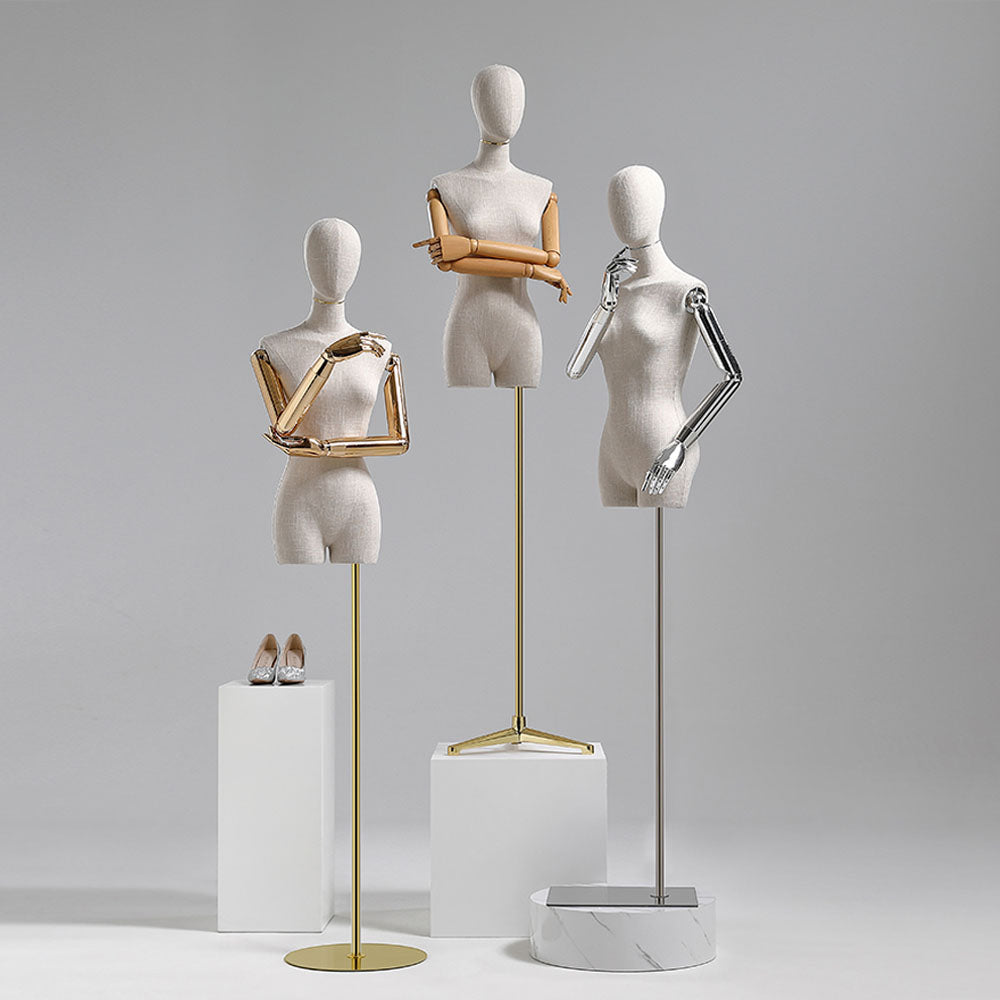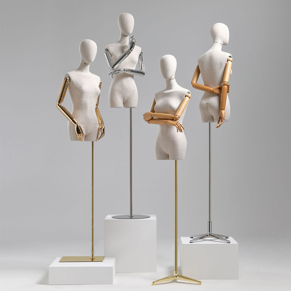 Jelimate High End Half Body Female Display Dress Form Adjustable Linen Mannequin Torso Model Fashion Window Fitting Mannequin Manikin Head For Wigs