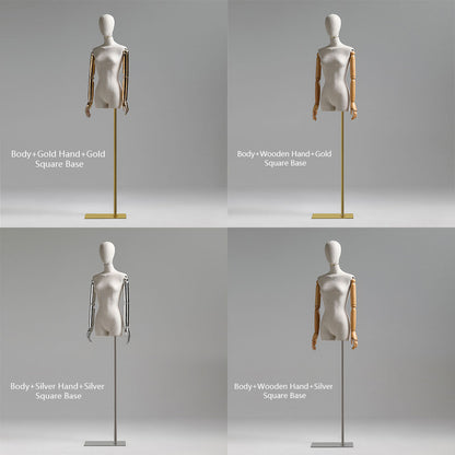 💖Style D: Half Body Mannequin Body+ Head +Wooden Hands +Gold Square Base .