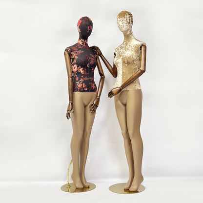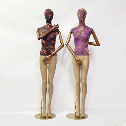 💋Female Full Body Mannequin : Female Full Body Mannequin + Head+Wooden Arms+Gold Round Base.