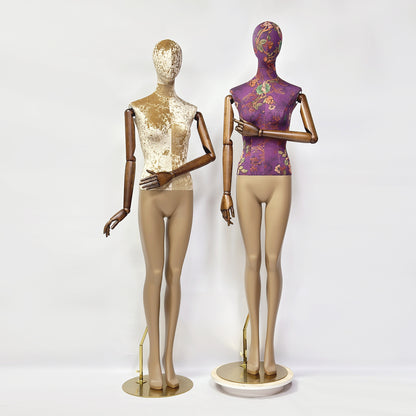 Jelimate Luxury Mannequin Full Body Dress Form,Clothing Shop Female Display Dress Form With Wooden Arms,Upper Body Fabric Wrapped Lower Body Painting Leg