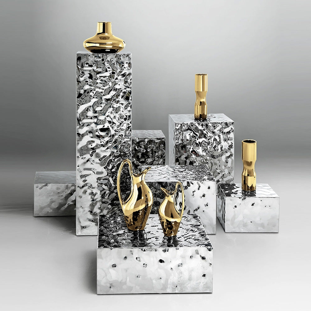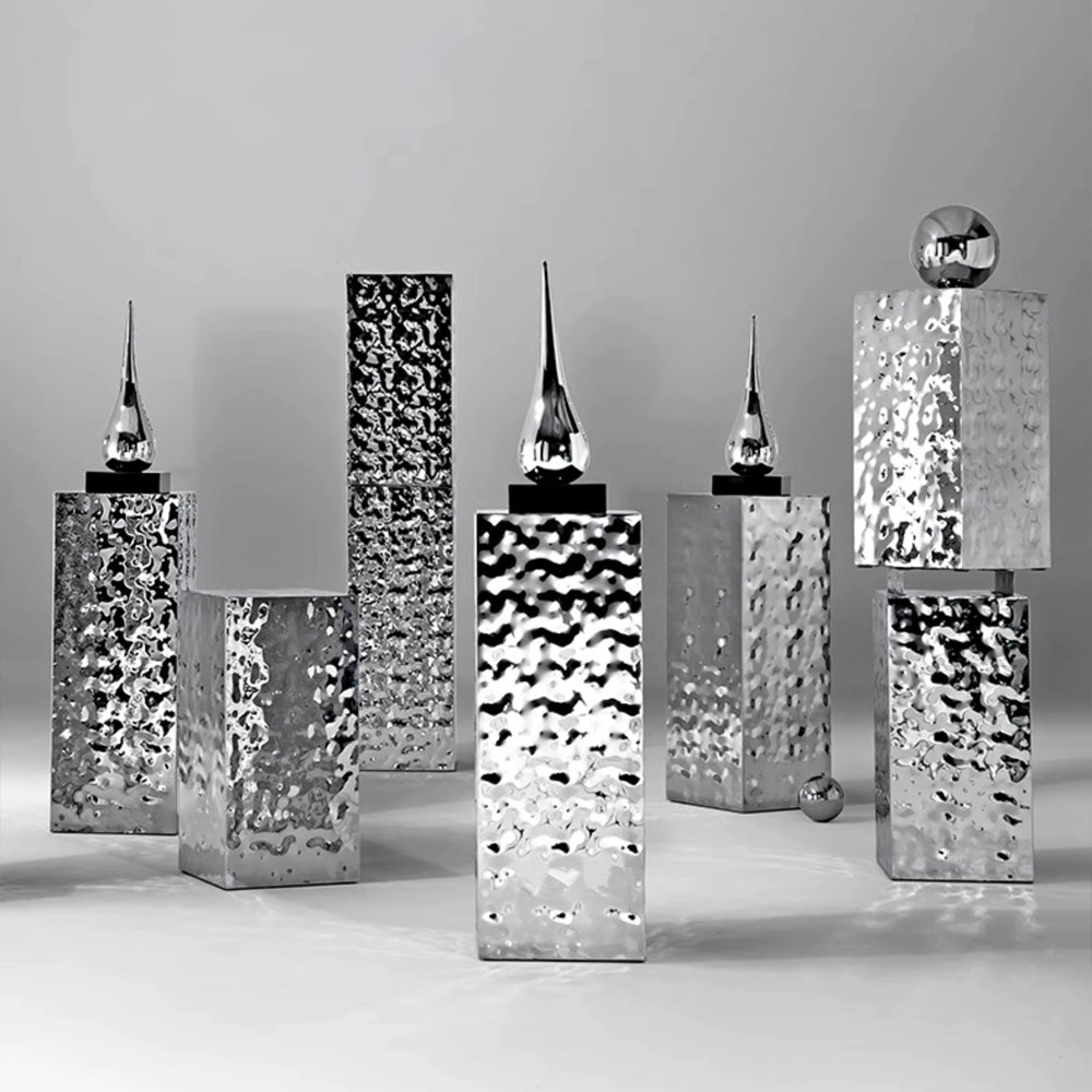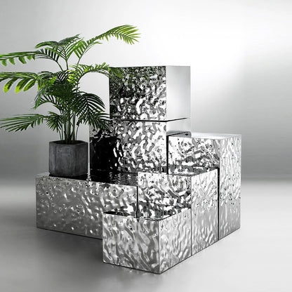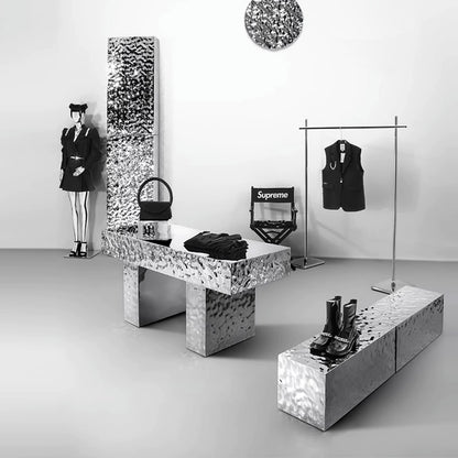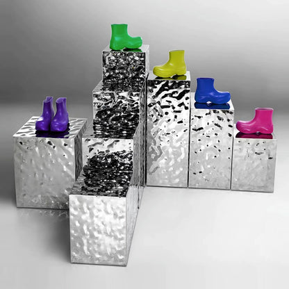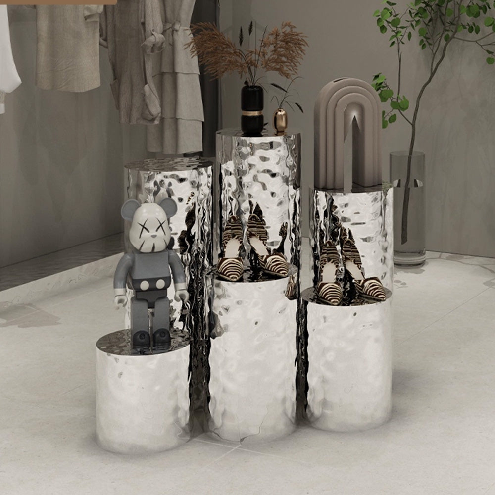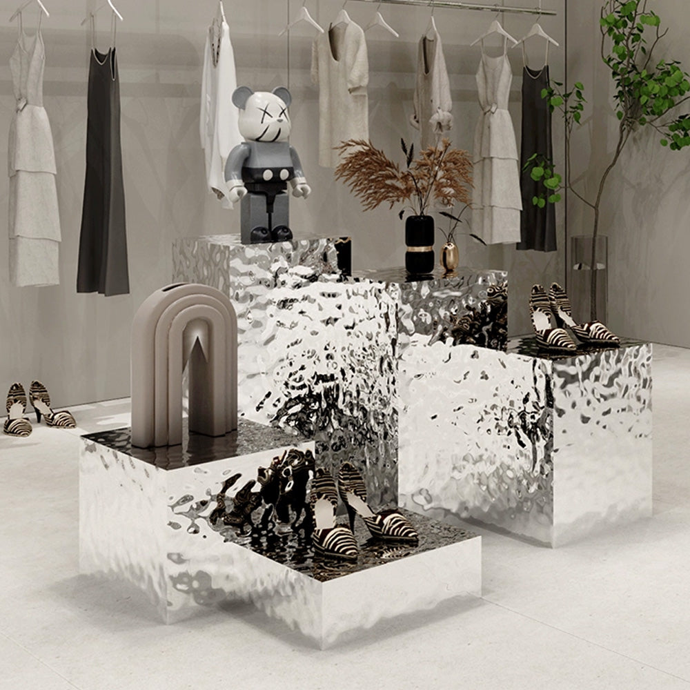 Jelimate Stainless Steel Floor Mirror Water Ripple Silver Display Rack Mannequin Risers,Clothing Shop Mannequin Platform Shop Fitting Mannequin Stand,Round Square Dress Form Pedestal Plinth Props