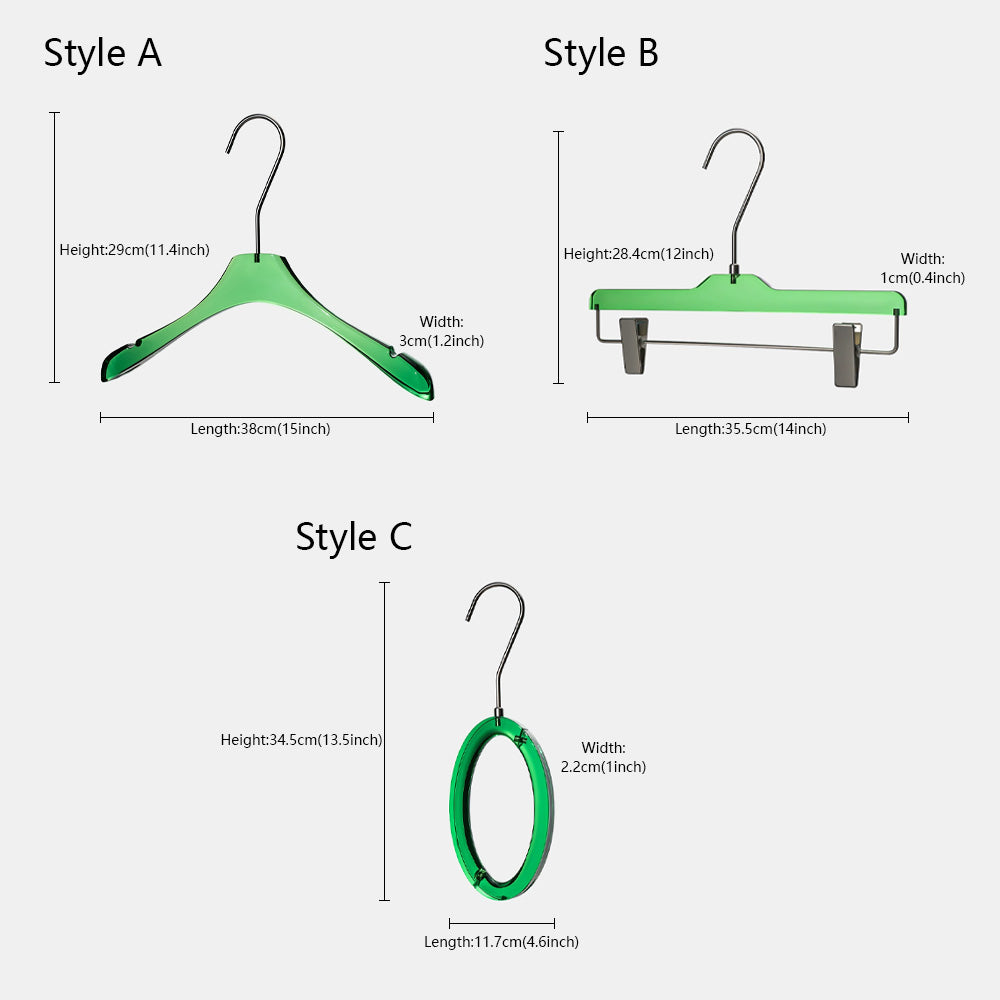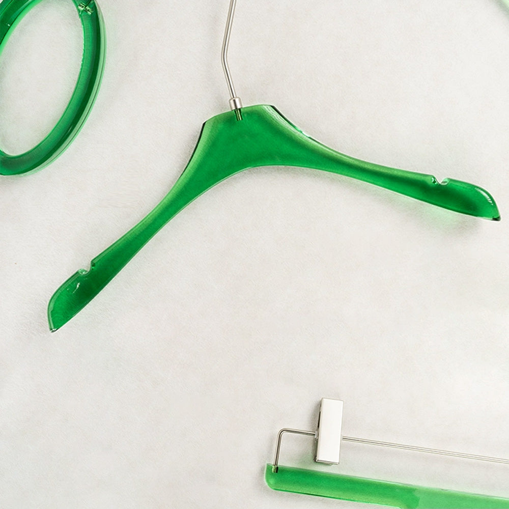 Jelimate Women Clothing Store Green Acrylic Hangers Household Transparent Clothing Hanger Non-Slip Clear Crystal Hanger Scarf Ring Hanger Clothes Pant Hanger